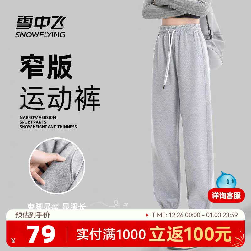 雪中飞休闲运动裤女2025新款春季薄款卫裤小个子遮胯显瘦束脚裤PC