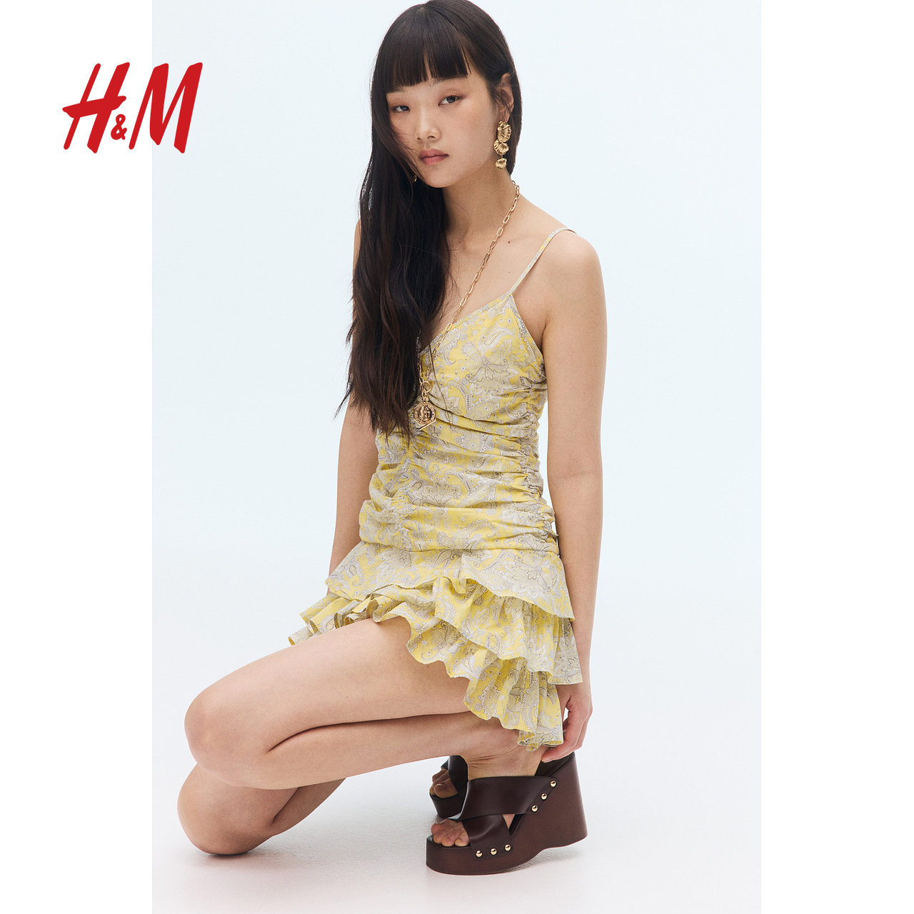 HM2025年冬季新款女装叠层裙摆吊带连衣裙1274551