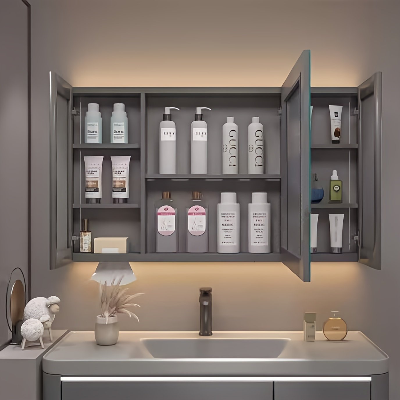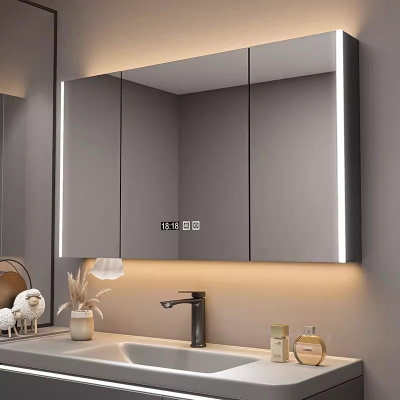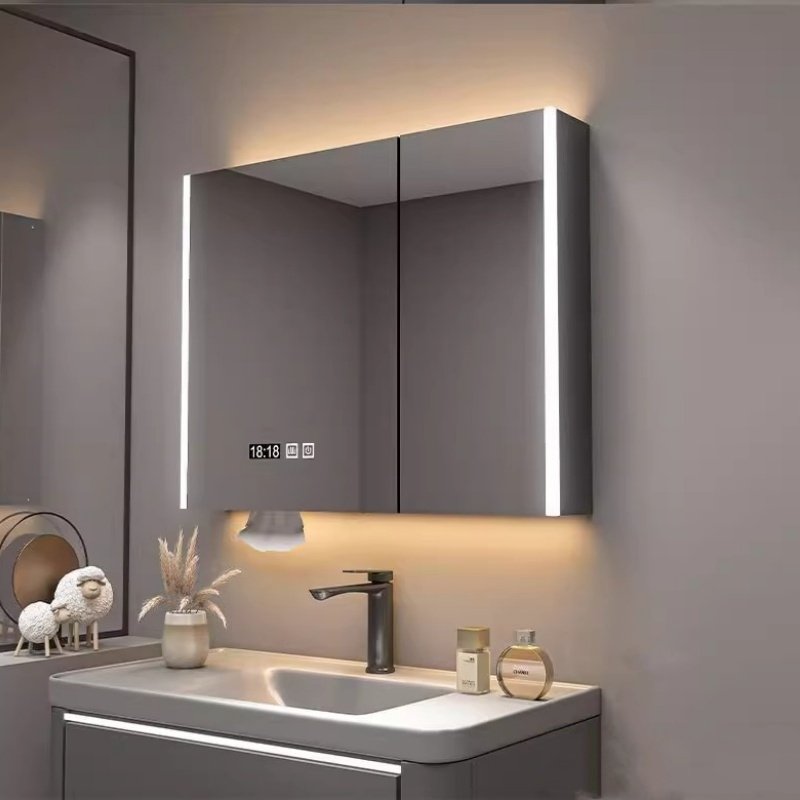 实木智能浴室镜柜单独挂墙式带灯卫生间镜子收纳柜子镜箱亚克力