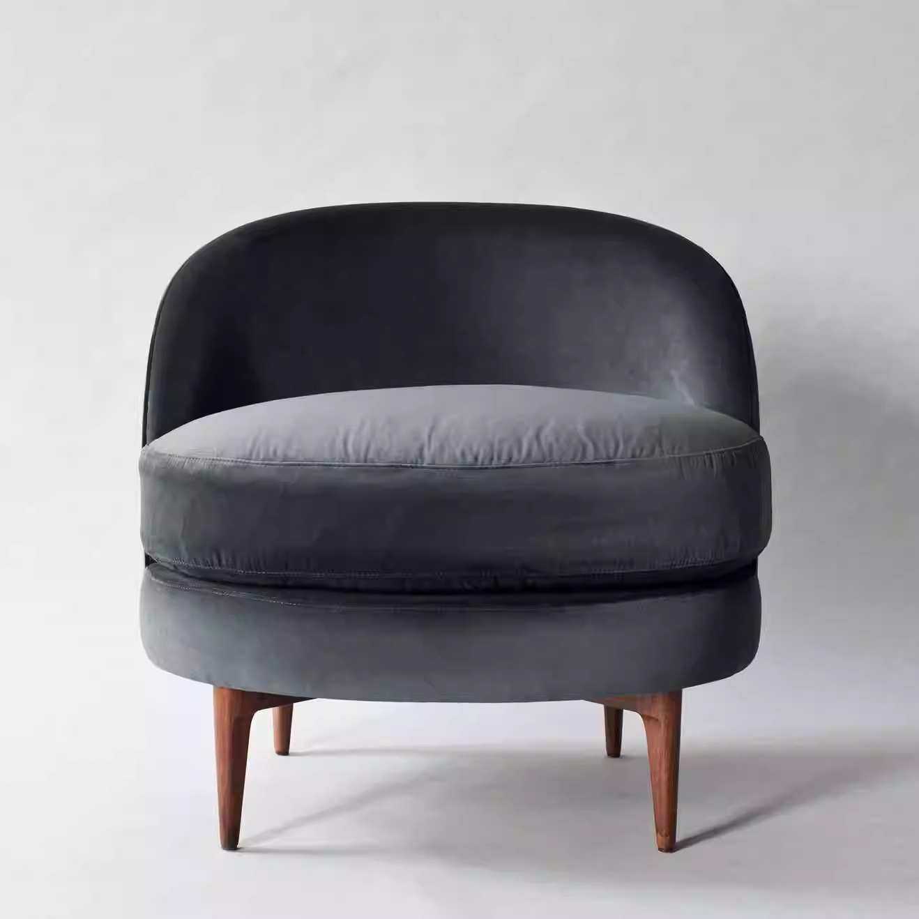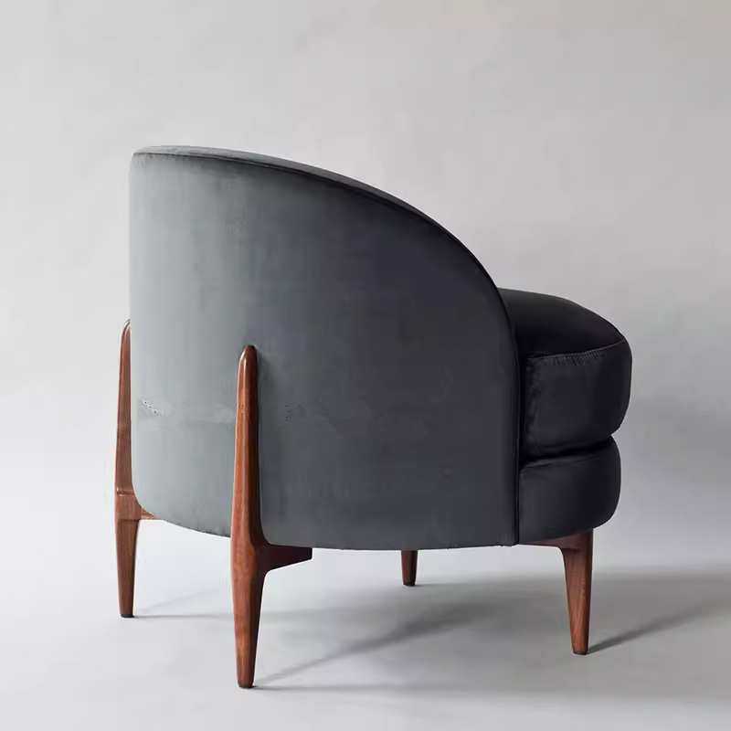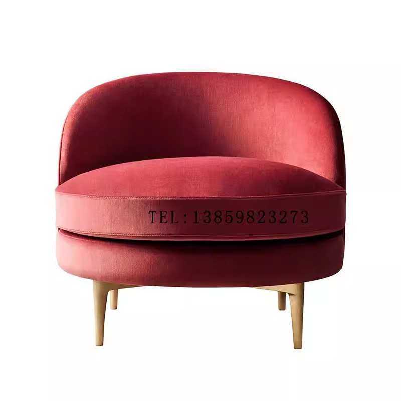 后现代实木布艺单人沙发椅美式客厅卧室休闲椅咖啡厅酒店沙发