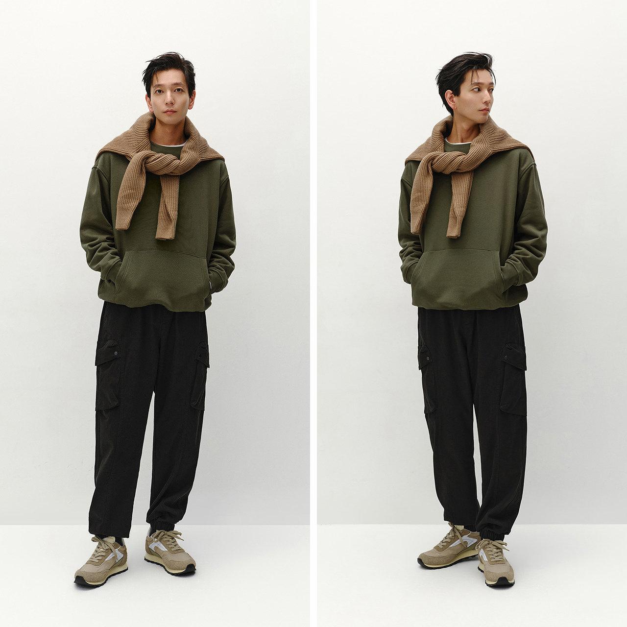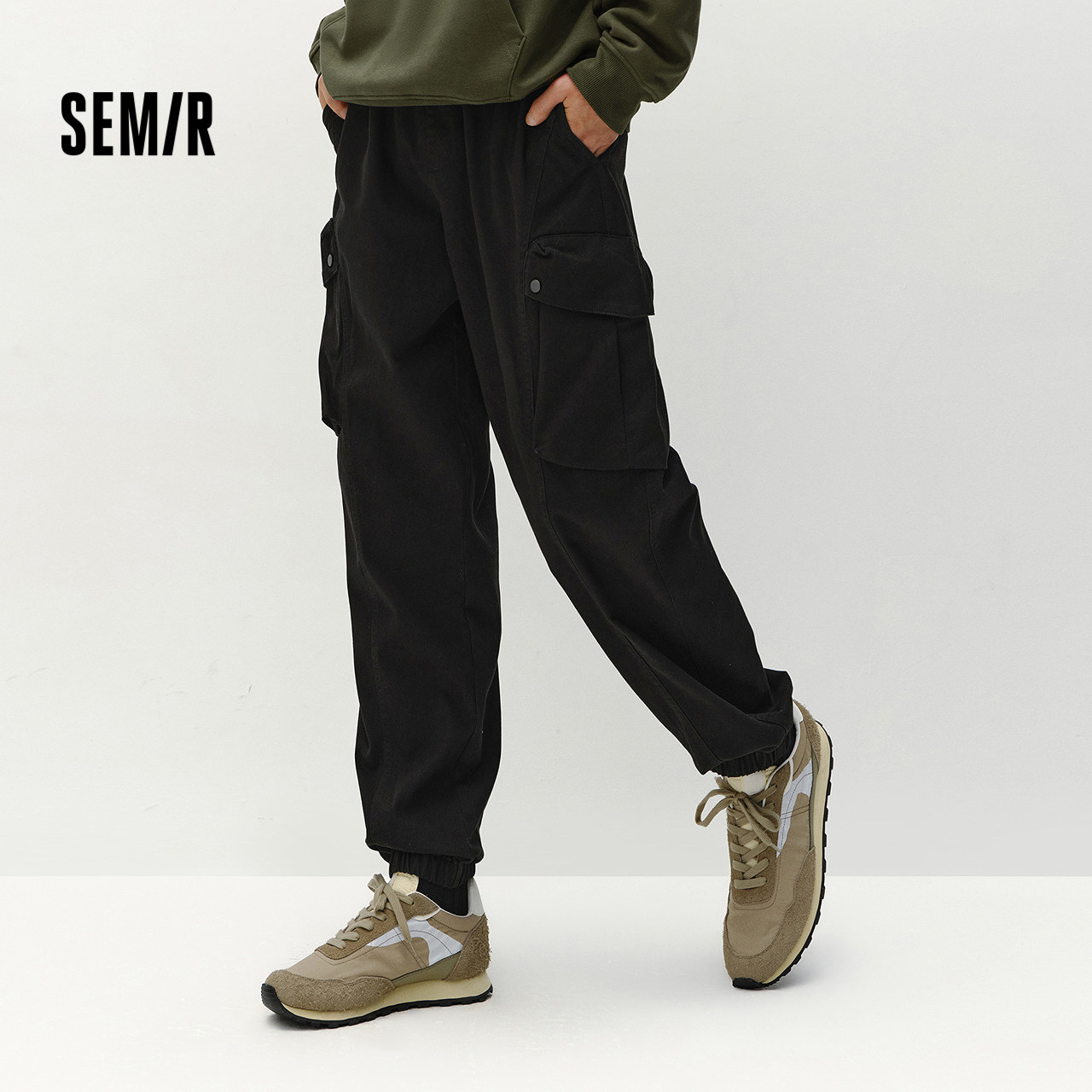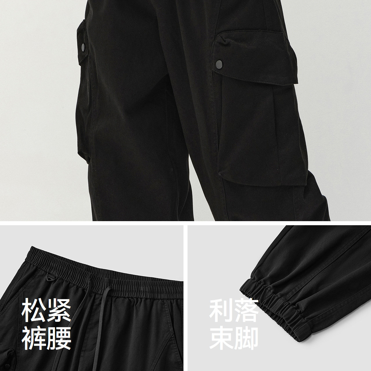 宽松束脚休闲裤 磨毛大口袋工装裤
