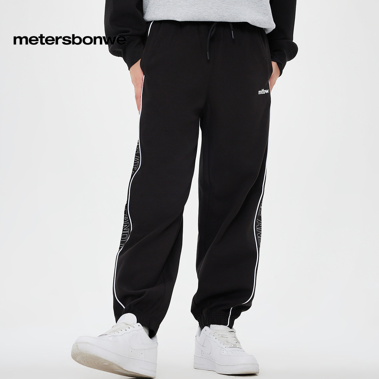 美特斯邦威针织束脚裤男女同款秋季新款修身街头哈伦长裤
