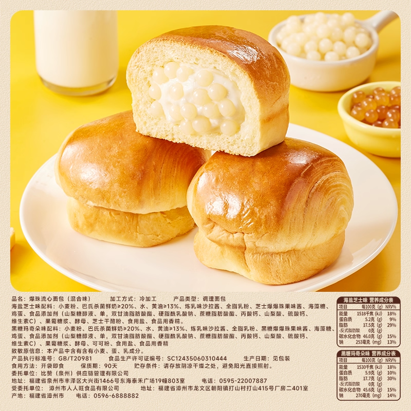 比比赞爆珠流心面包学生早餐糕点解馋零食休闲食品小吃夹心啵啵