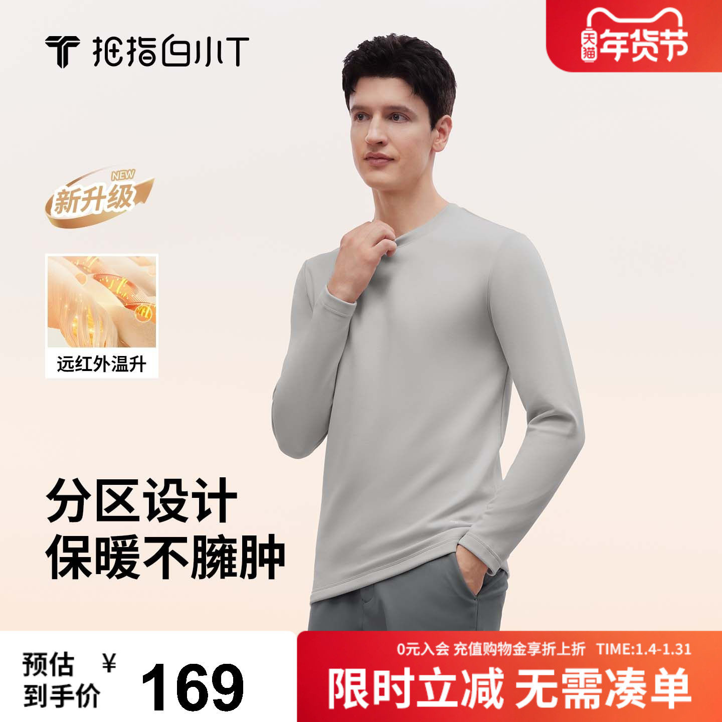 拇指白小T热力加绒长袖T恤男女情侣休闲上衣25秋冬加厚保暖打底衫