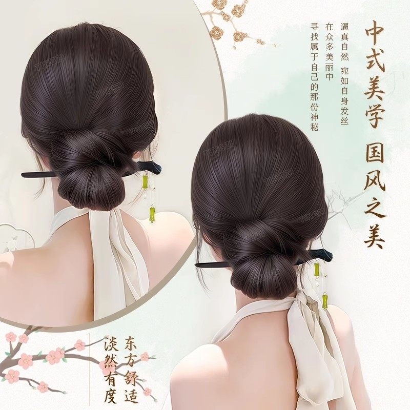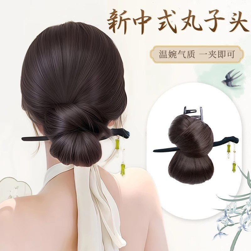 蓬松假发丸子头仿真发女新中式古风后脑勺扎盘发发簪抓夹发包气质