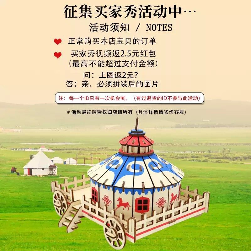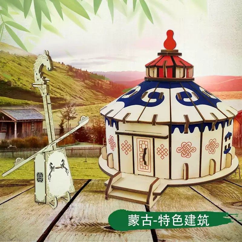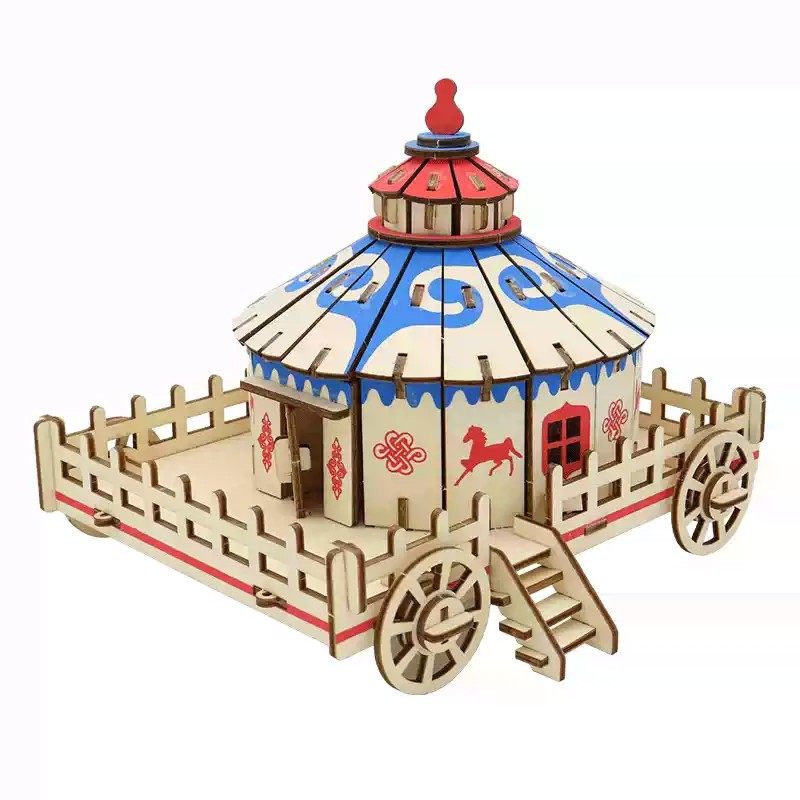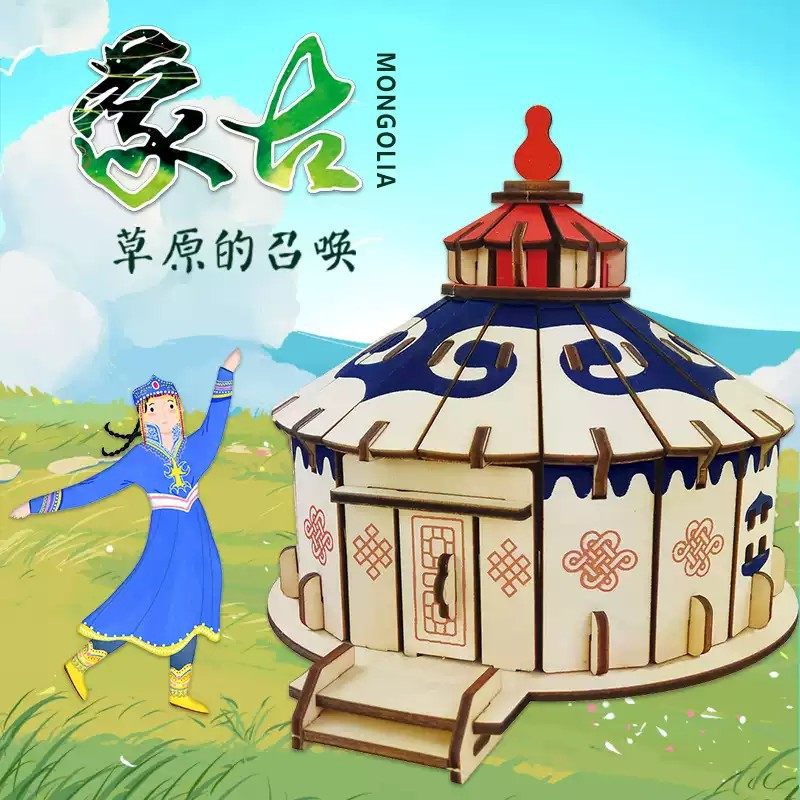 木质3D立体拼图益智减压模型草原明珠蒙古包成人拼装玩具儿童手工