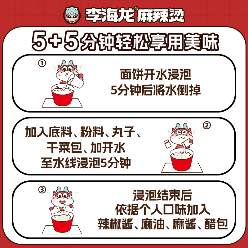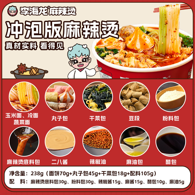 李海龙麻辣烫桶装冲泡速食夜宵238克/桶3桶6桶装带丸子速食喝汤