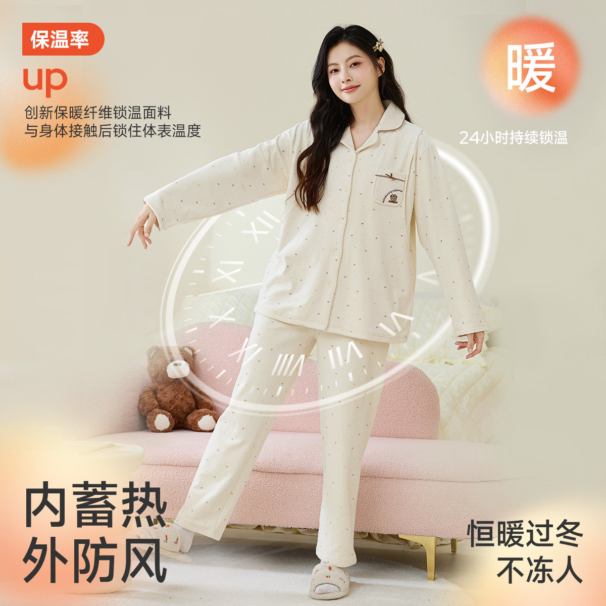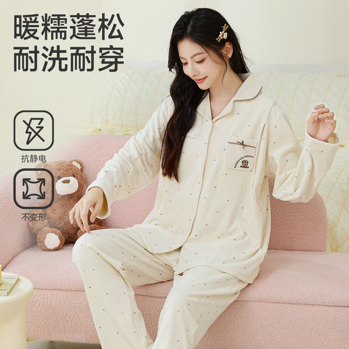 婧麒月子服孕妇睡衣冬外穿火山绒保暖加厚产妇哺乳喂奶家居服套装