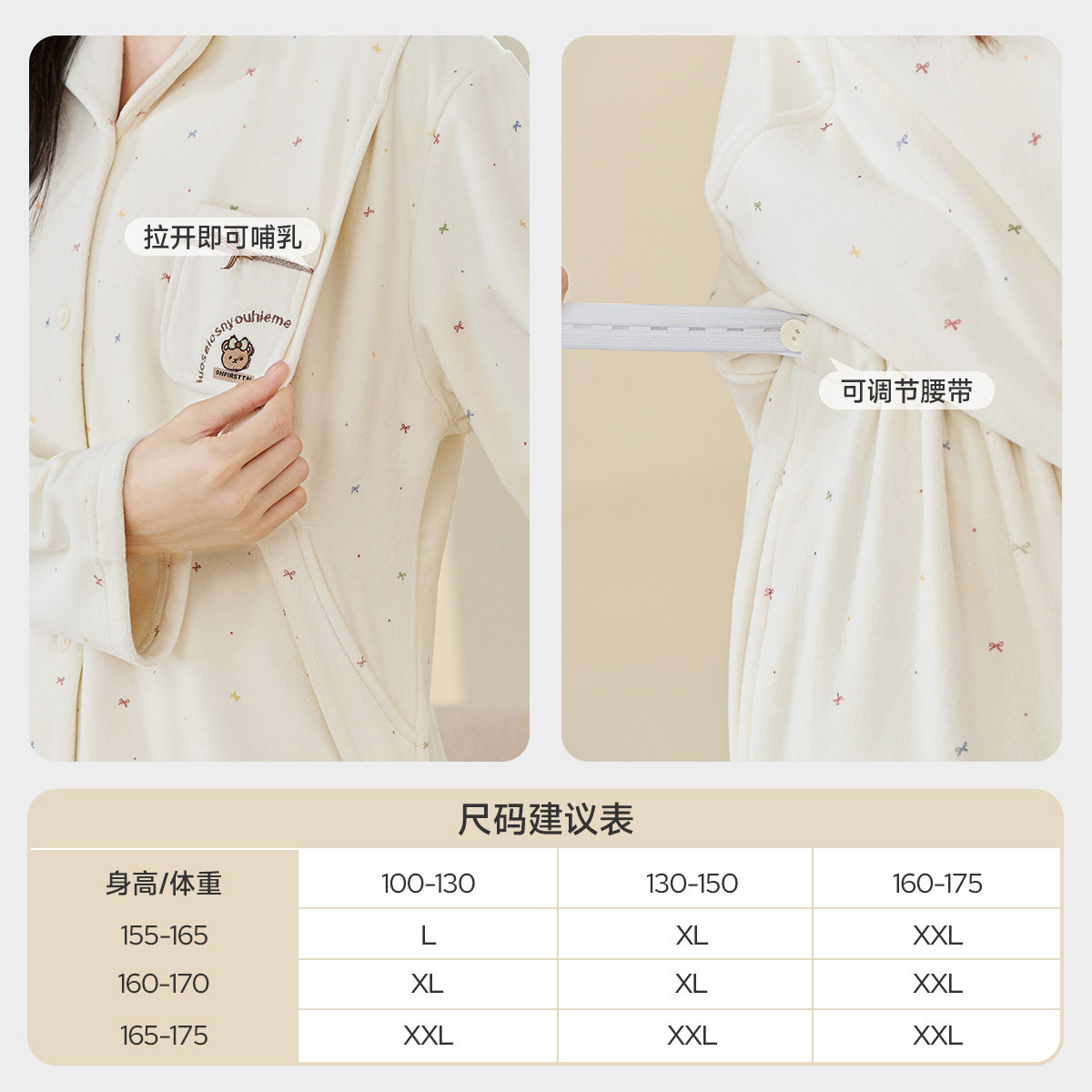 带胸垫奶香风纯棉月子服春秋季产后产妇孕妇睡衣秋冬款哺乳喂奶衣