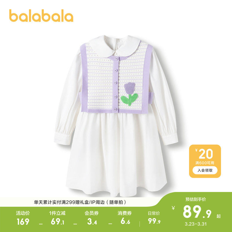 巴拉巴拉童装儿童连衣裙针织拼接女童春秋装学院娃娃领裙子套装潮