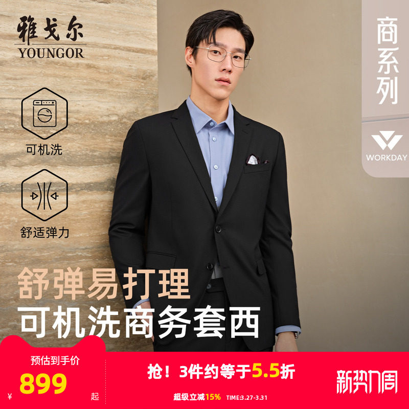 雅戈尔男士春秋季新款商务西服婚庆休闲可机洗羊毛西装外套男
