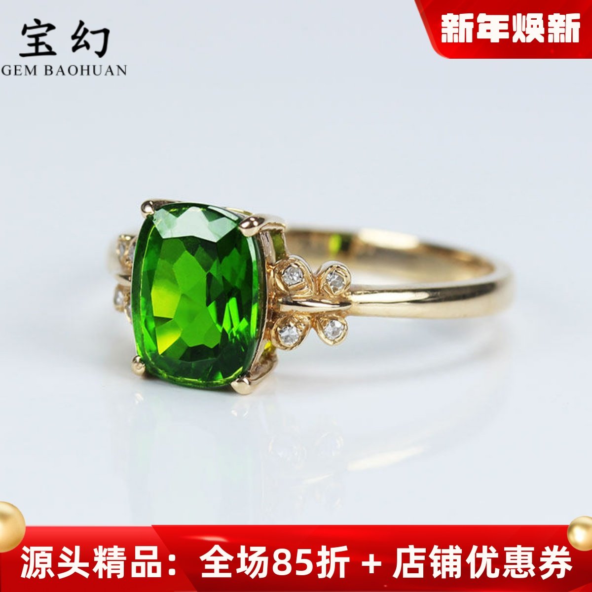 18k玫瑰金伴钻石天然透辉石戒指 电光绿宝石蝴蝶女款小清新超值