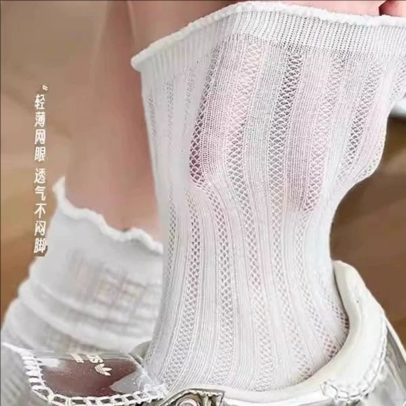 白色堆堆袜少女生秋冬新款爆款棉袜木耳边中长筒甜美jk玛丽珍袜子