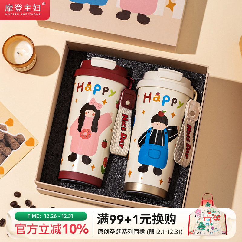 摩登主妇保温杯订婚新婚礼物女马年本命年结婚一对情侣杯子咖啡杯