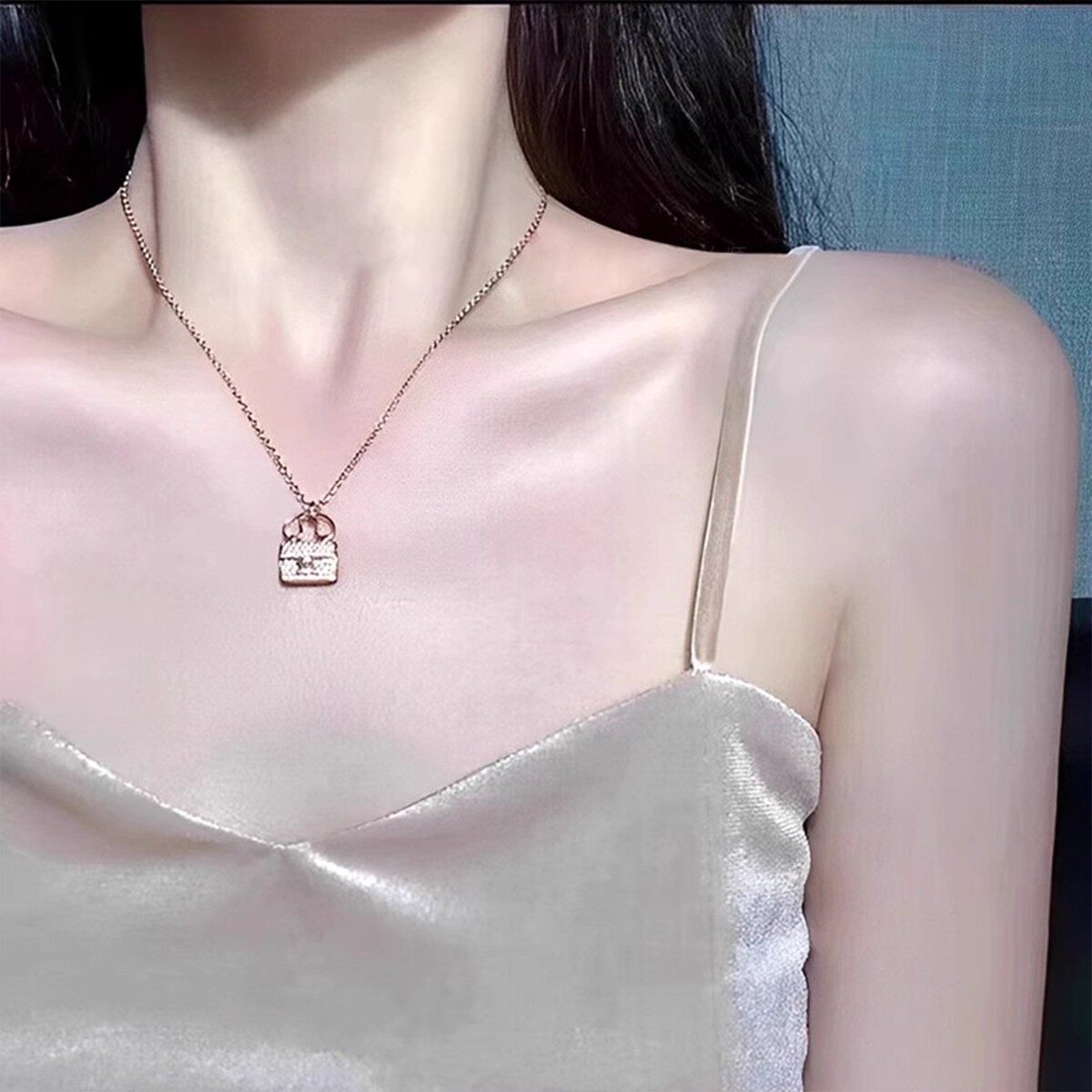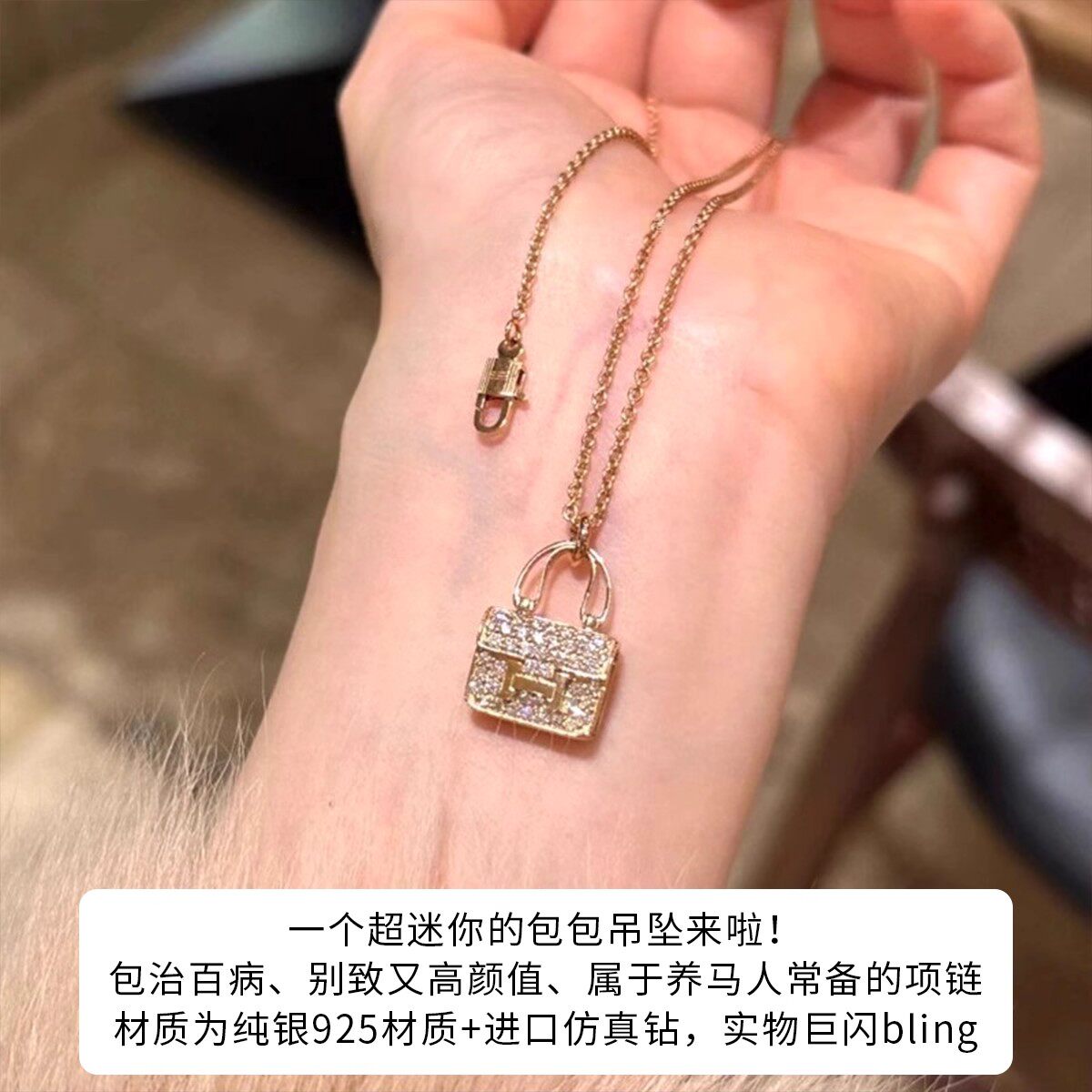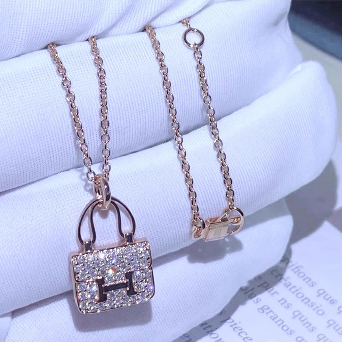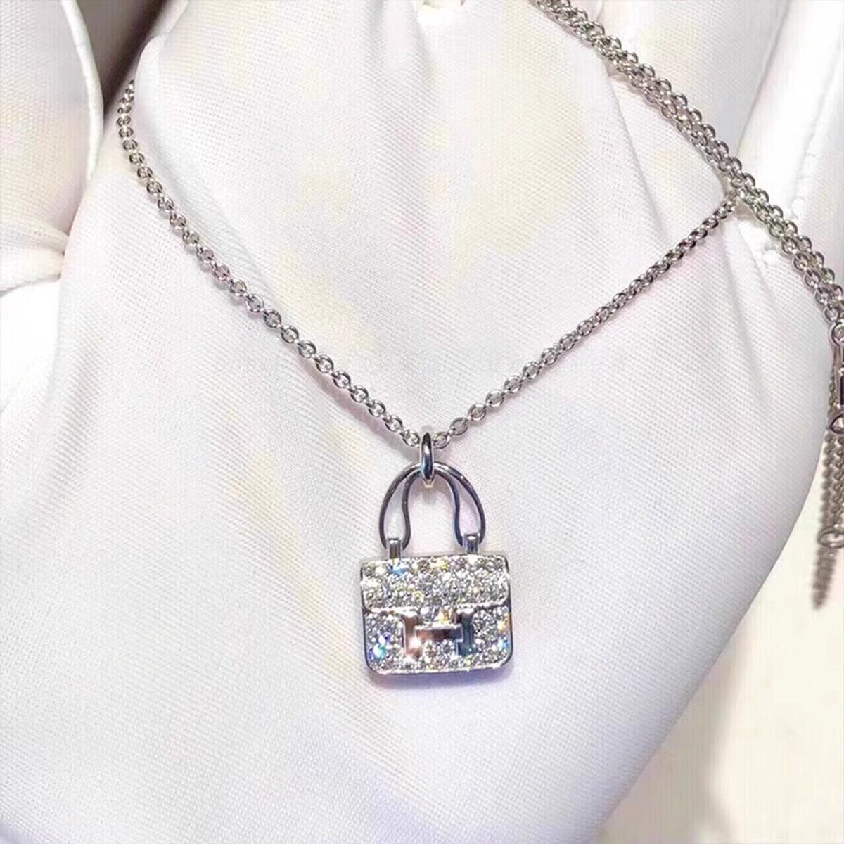 H康康包项链轻奢镀18K金康康包吊坠女士玫瑰金锁头不掉色黄金纯银