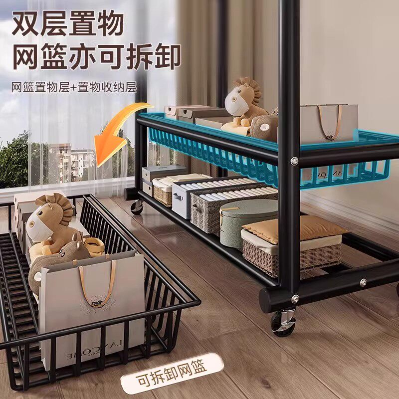 挂衣架落地卧室家用房间室内双杆晾晒衣服架子可移动多功能衣帽架