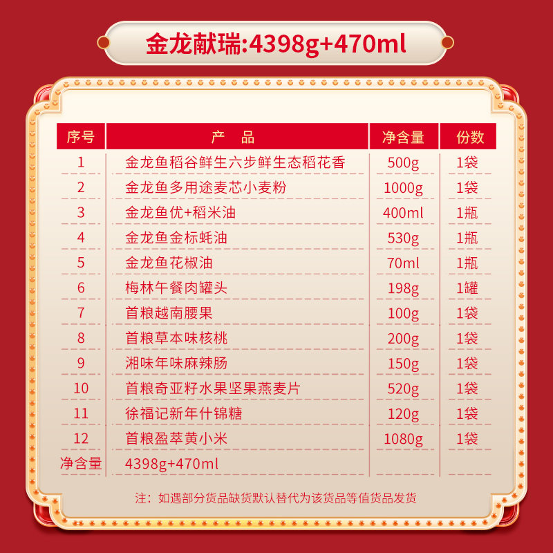 金龙鱼五谷杂粮大礼包金龙献瑞4868g粮油米面组合装春节年货福利