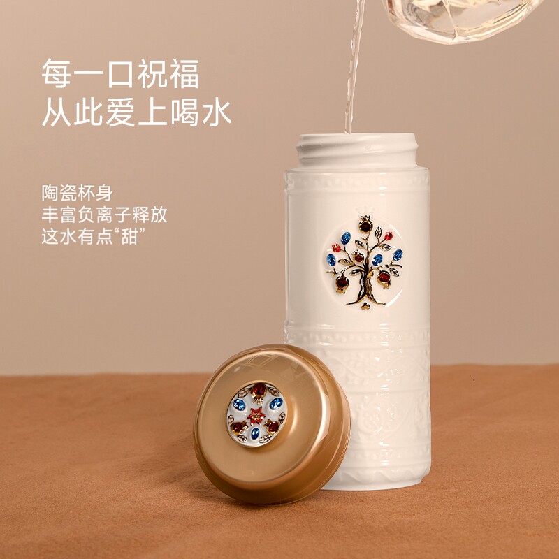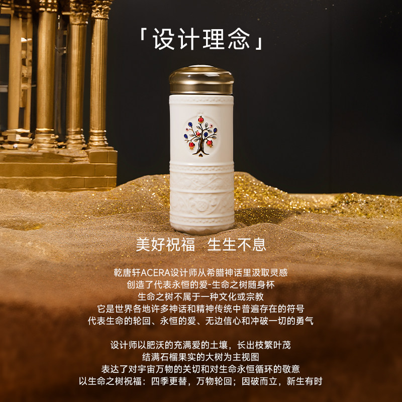 【家装节】乾唐轩活瓷杯2025新款生命之树陶瓷杯鎏金随手杯送礼