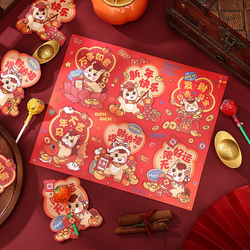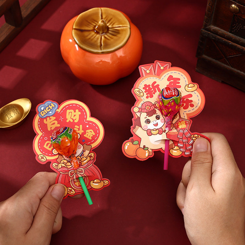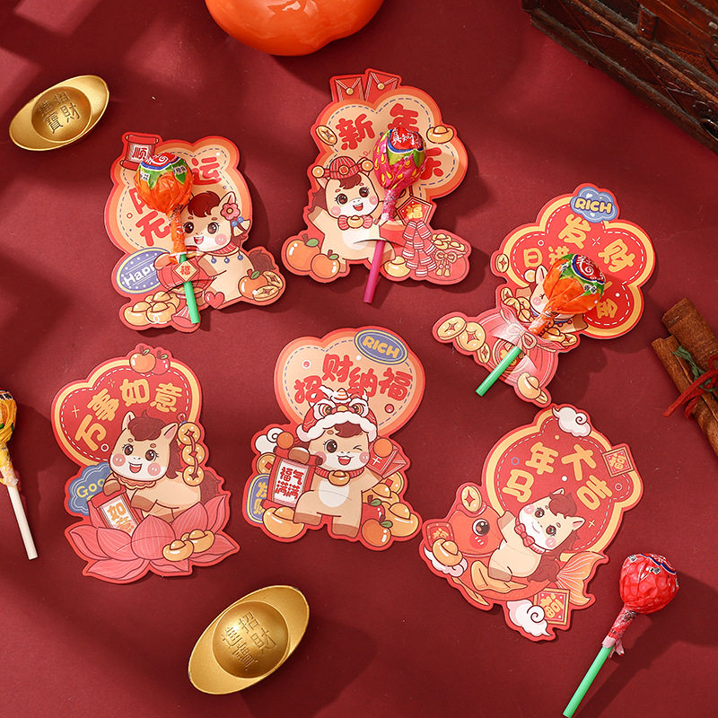 马年新年卡通棒棒糖插卡纸心愿卡糖卡纸饰纸卡礼品卡片幼包装diy儿园送礼生励志祝福鼓励语花店生日许愿春节
