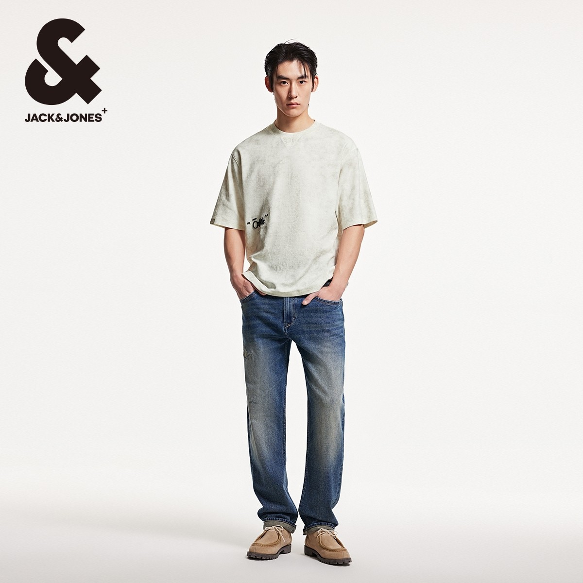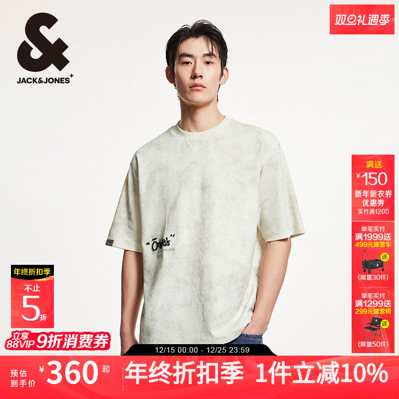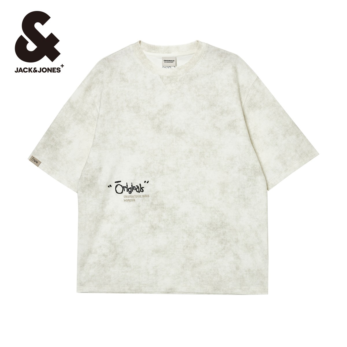 杰克琼斯秋季时尚百搭休闲宽松版型字母扎染设计短袖T恤上衣男装