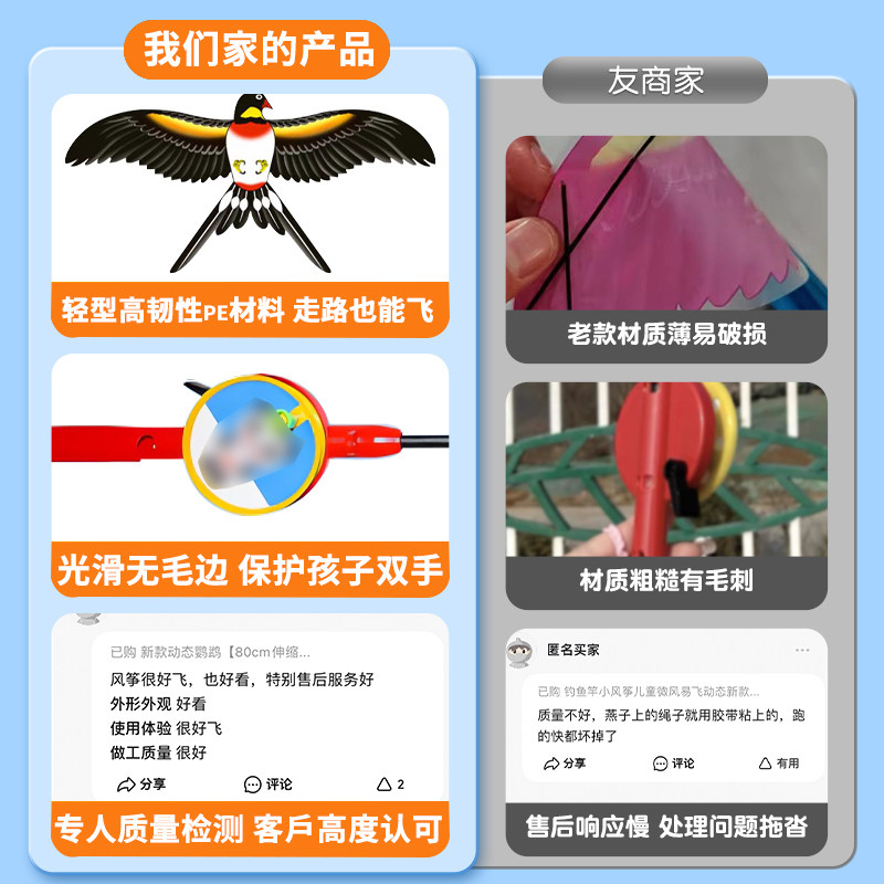 2025款迷你小风筝儿童手持燕子动态卡通微风易飞小号老鹰汪队