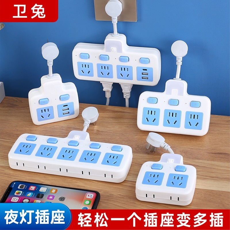 插座转换器面板无线排插插板插排带usb一转插头多插位充电多功能