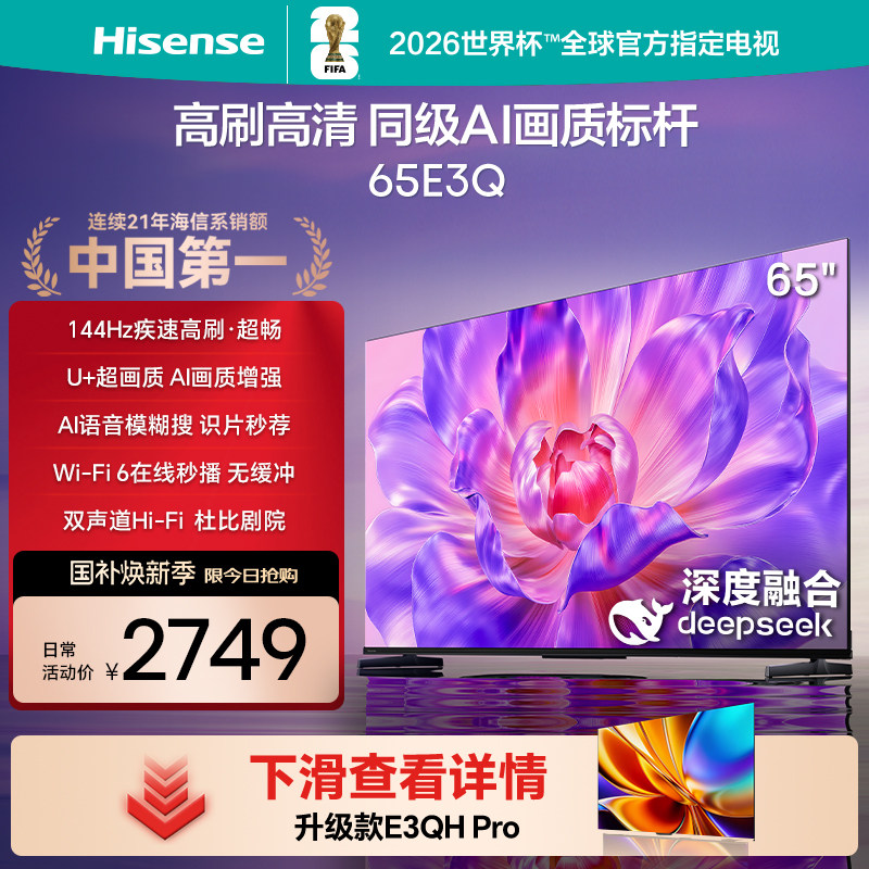 海信电视65E3Q 65英寸 高刷高清 AI画质标杆以旧换新补贴4K电视机