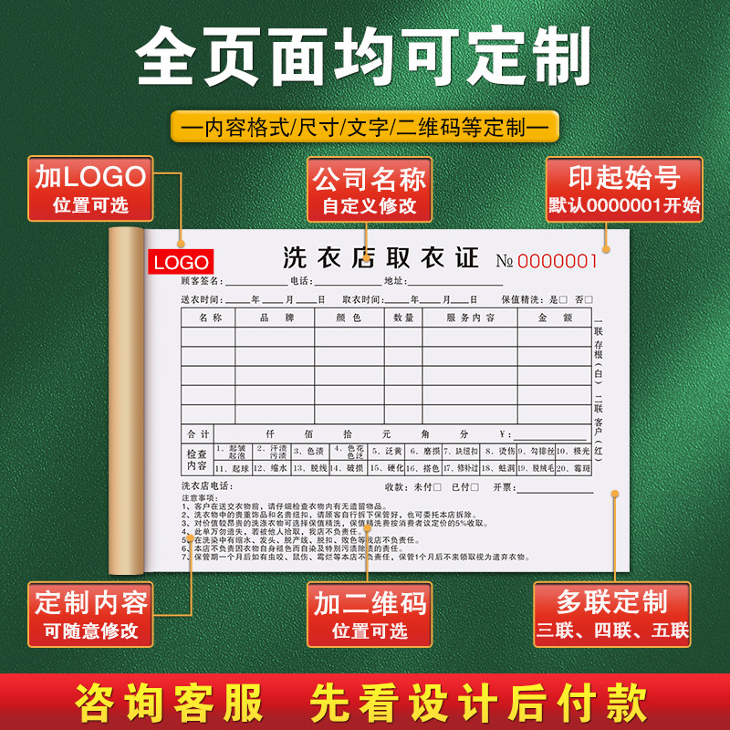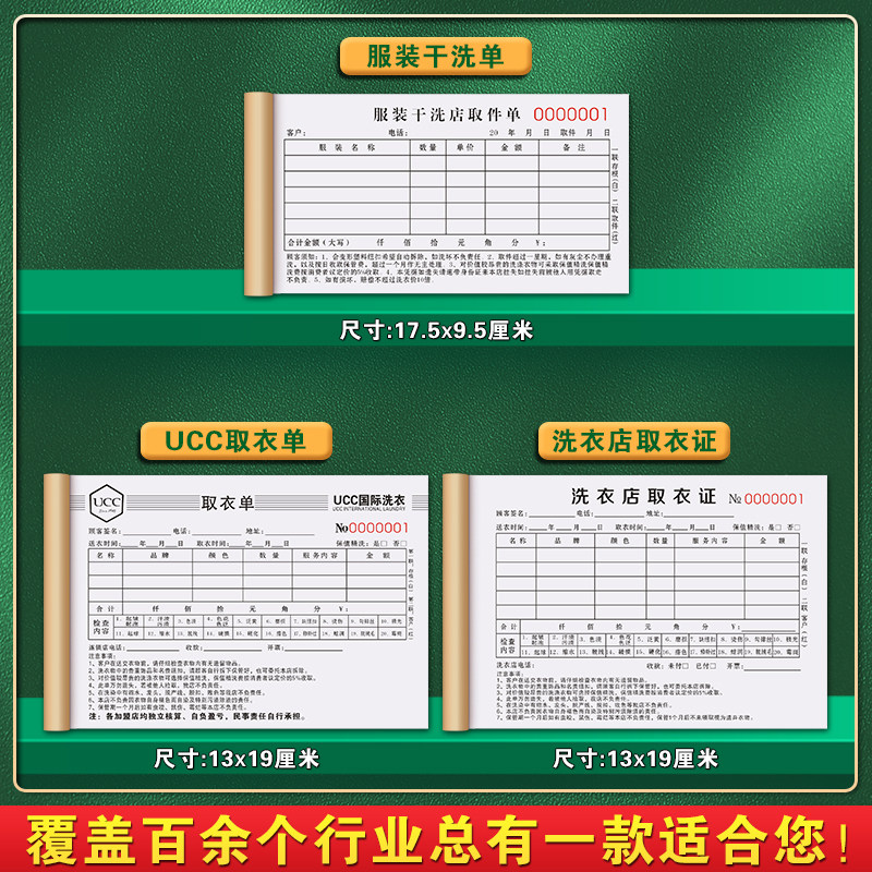 洗衣店收衣单收件专用收款凭证票赛维UCC单据取件证开票开单本洗涤收费表二联服装手写票据取衣证干洗店收据