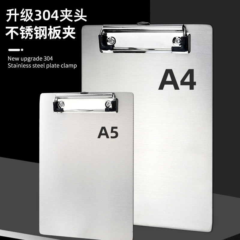 304夹头不锈钢平头文件夹板夹A5升级平滑扣耐磨A4夹板金属文件板夹资料夹小号菜单食品公司书写字板垫板子