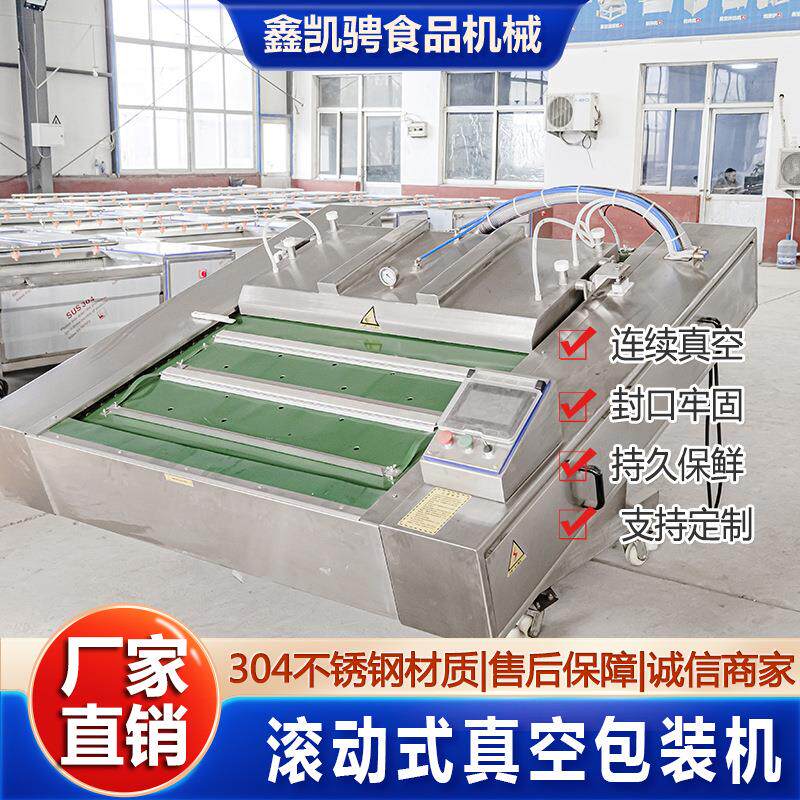 全自动食品双封条商用真空封口机粽子玉米腊肠连续滚动真空包装机