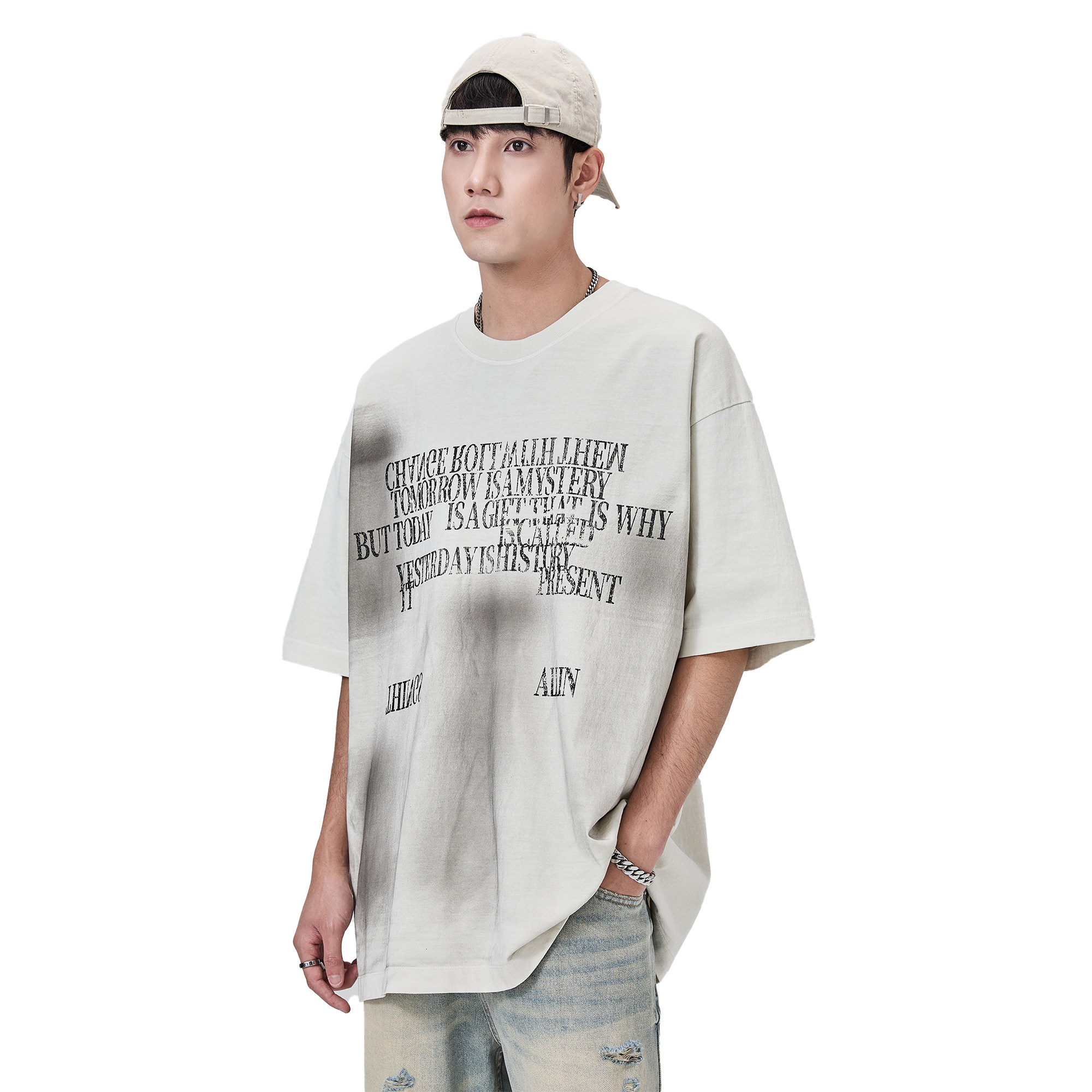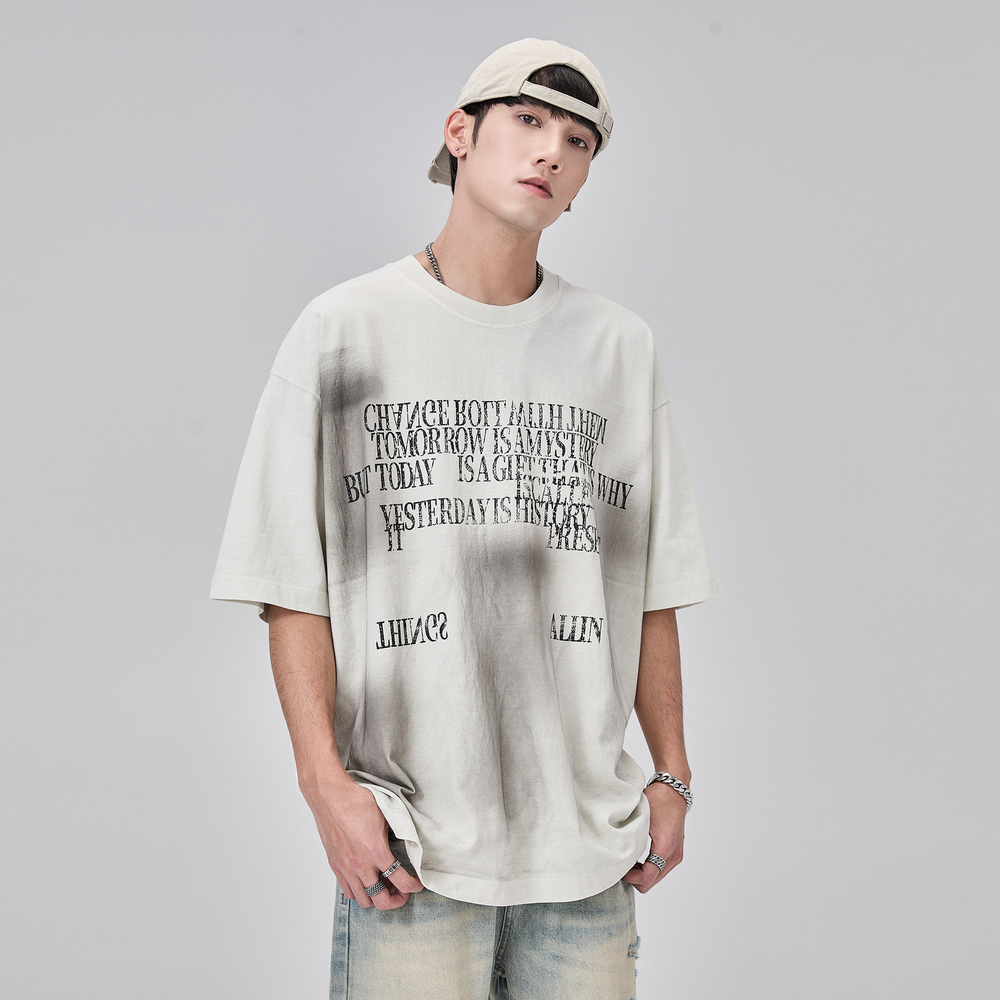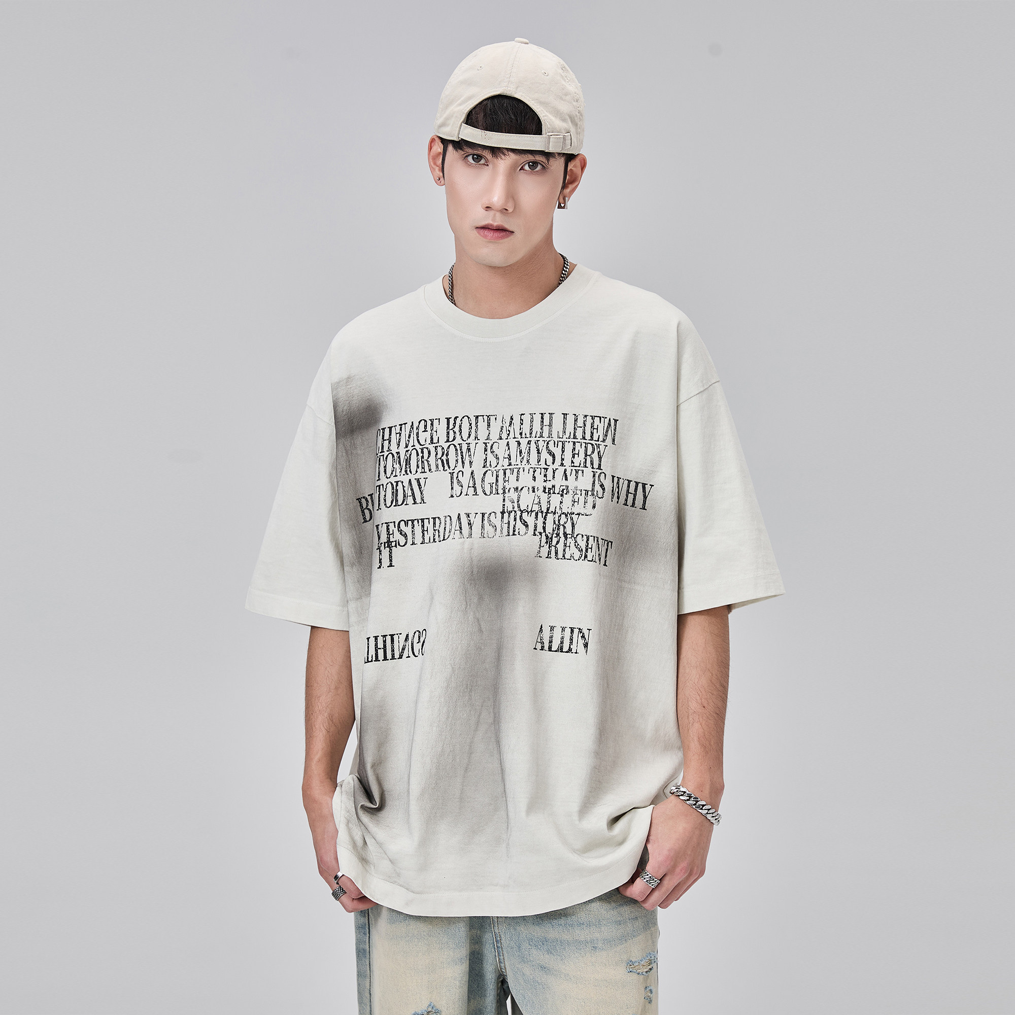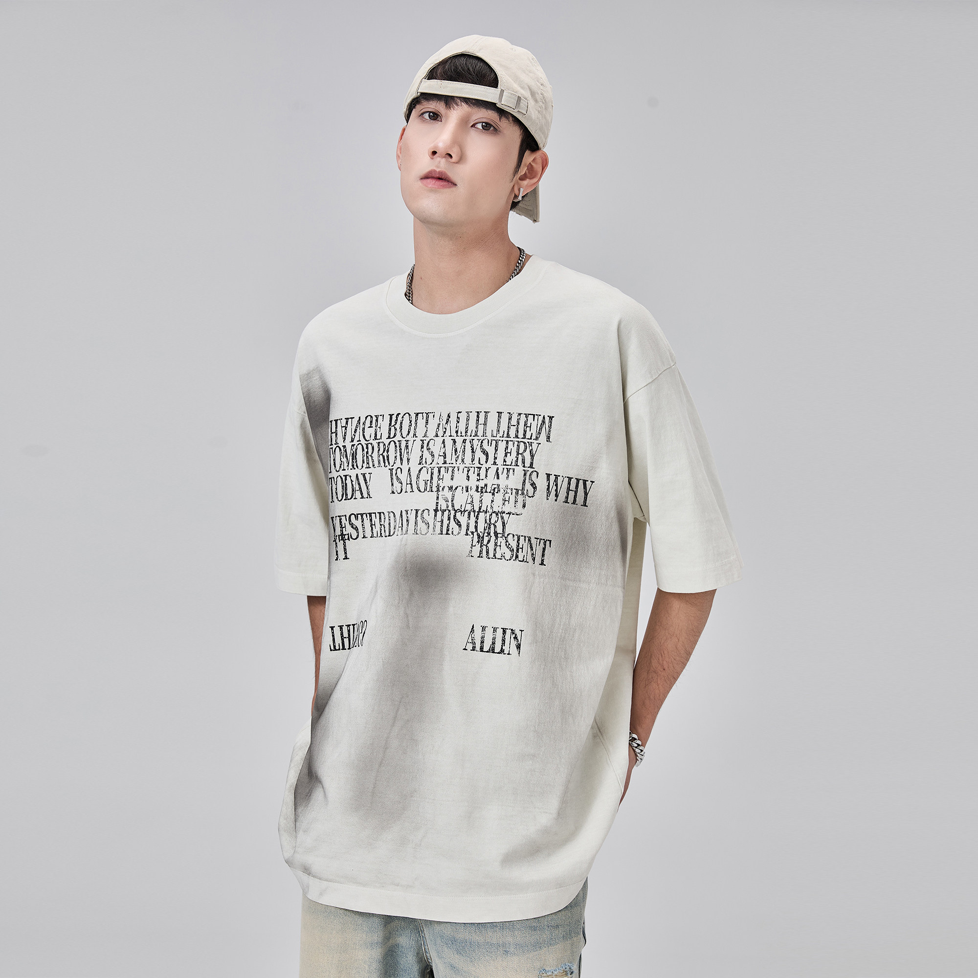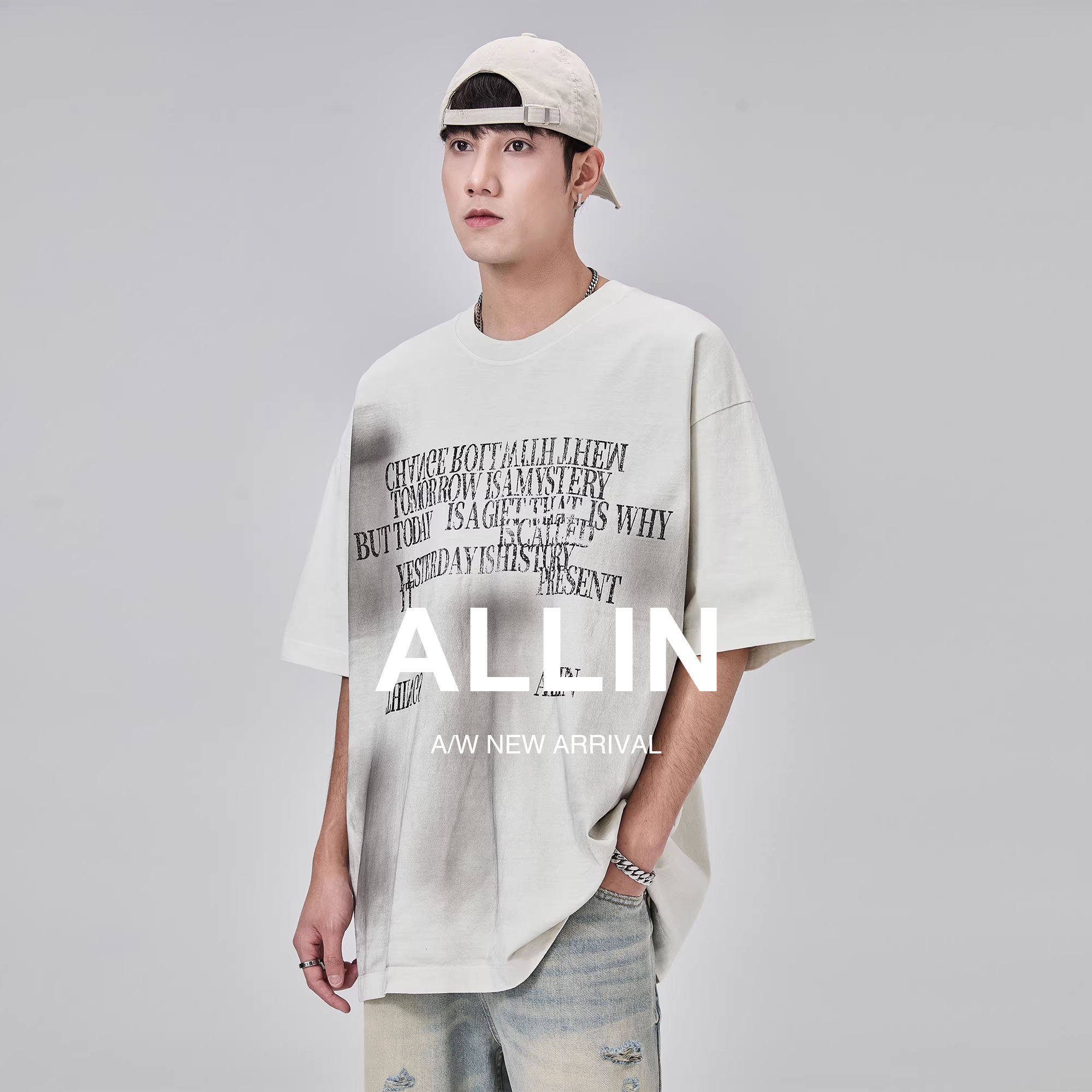 ALLIN 美式复古短袖t恤男夏季重磅纯棉情侣潮牌半袖字母印花上衣
