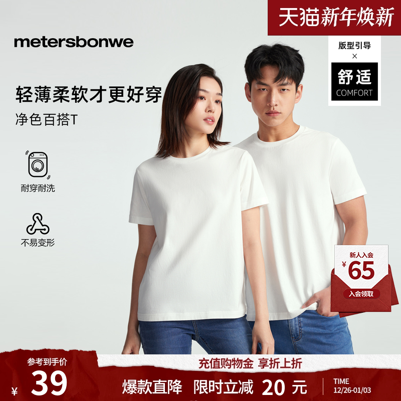 美特斯邦威男女同款t恤夏季新款时尚基础简约百搭舒适短袖T恤上衣