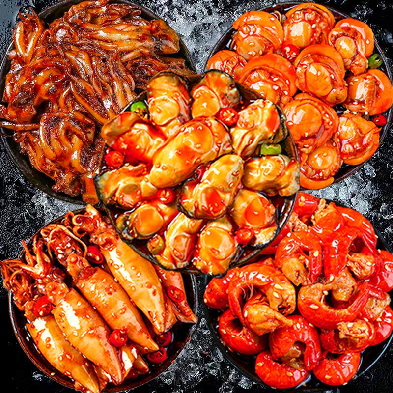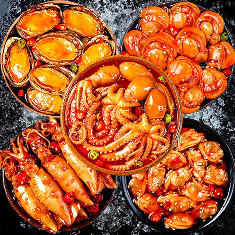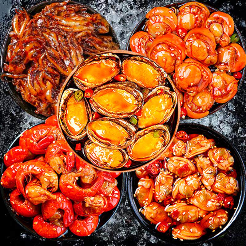 海鲜熟食即食罐装蒜蓉生蚝麻辣生蚝麻辣鲍鱼皮皮虾肉虾仁八爪扇贝