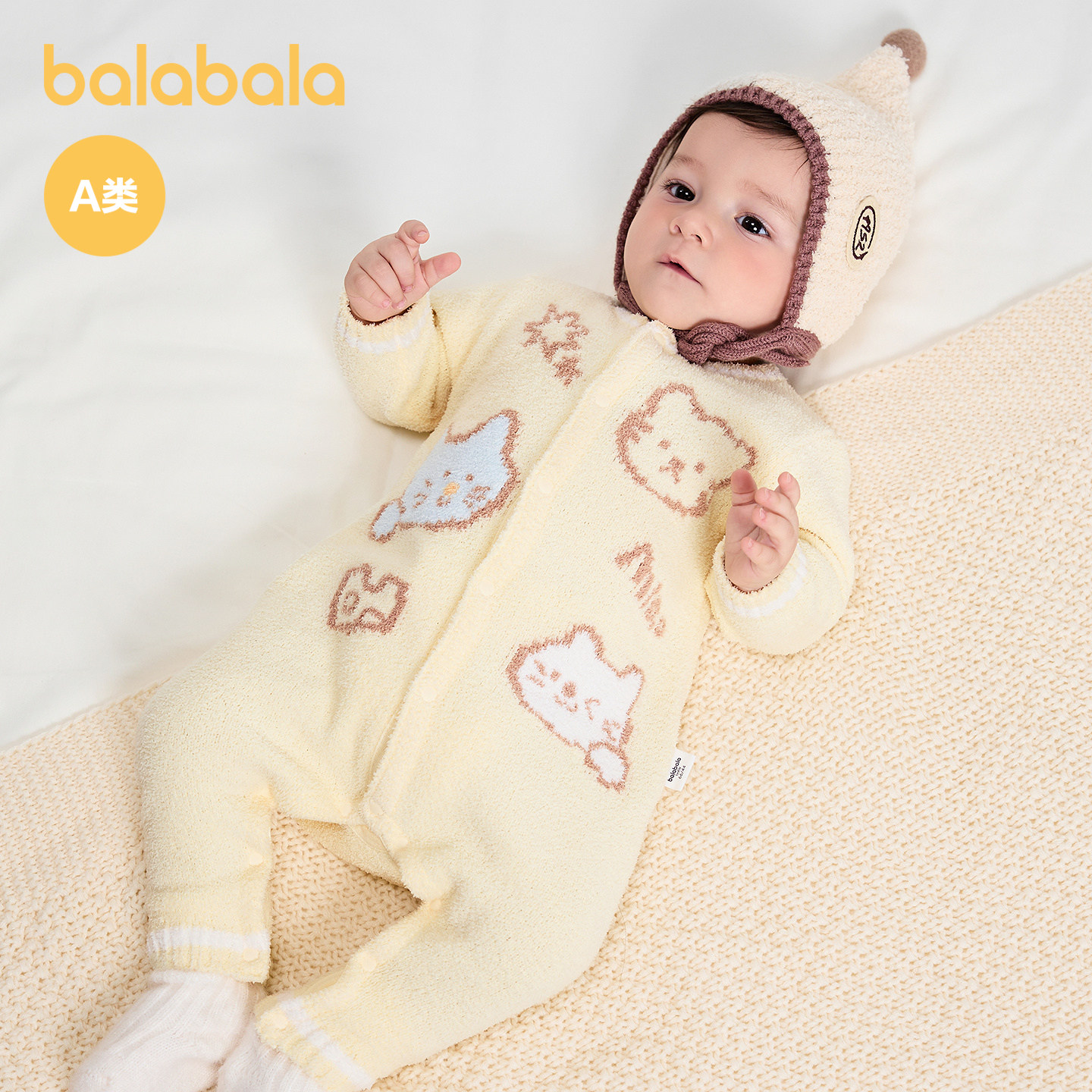 【商场同款】巴拉巴拉婴儿连体衣新生儿宝宝爬服2025新款冬半边绒