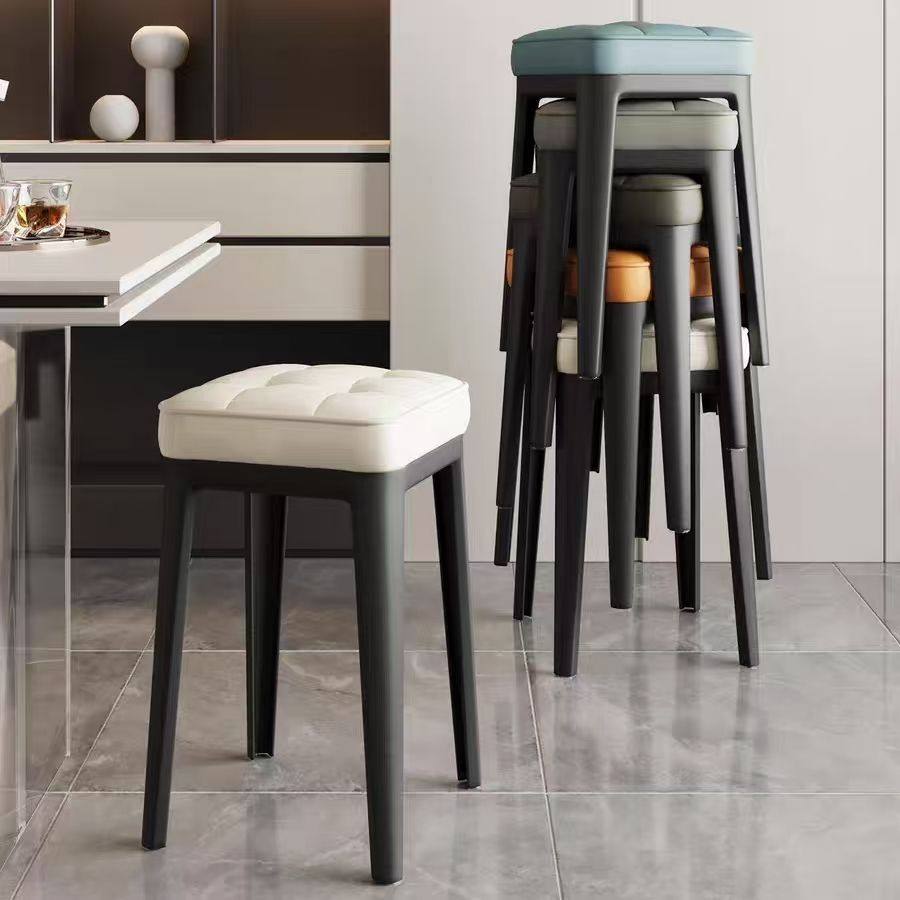 现代简约黑色方椅可叠放办公吧台软包座椅家用餐厅餐桌椅舒适餐椅