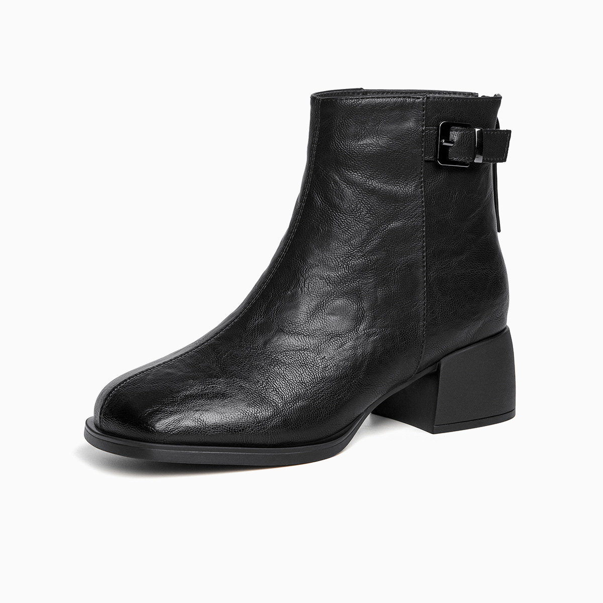 DREAMBOX钧博粗跟气质女靴水洗马皮尖头切尔西靴厚底增高洋气靴子