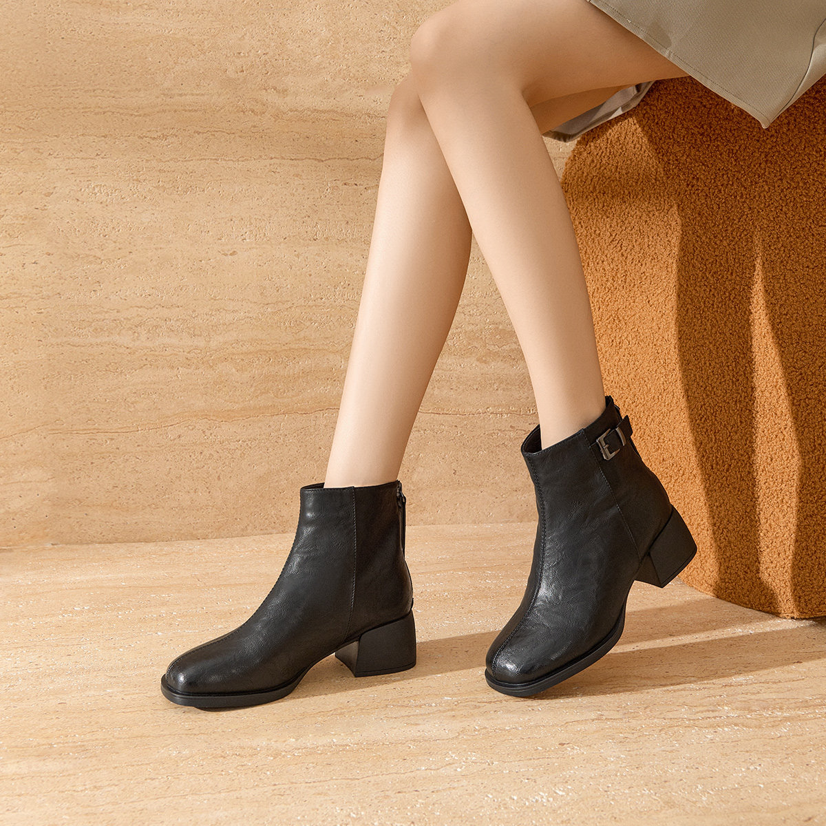 戈美其短靴女2025冬季新款瘦瘦靴粗跟不累脚妈妈高跟鞋女士马丁靴