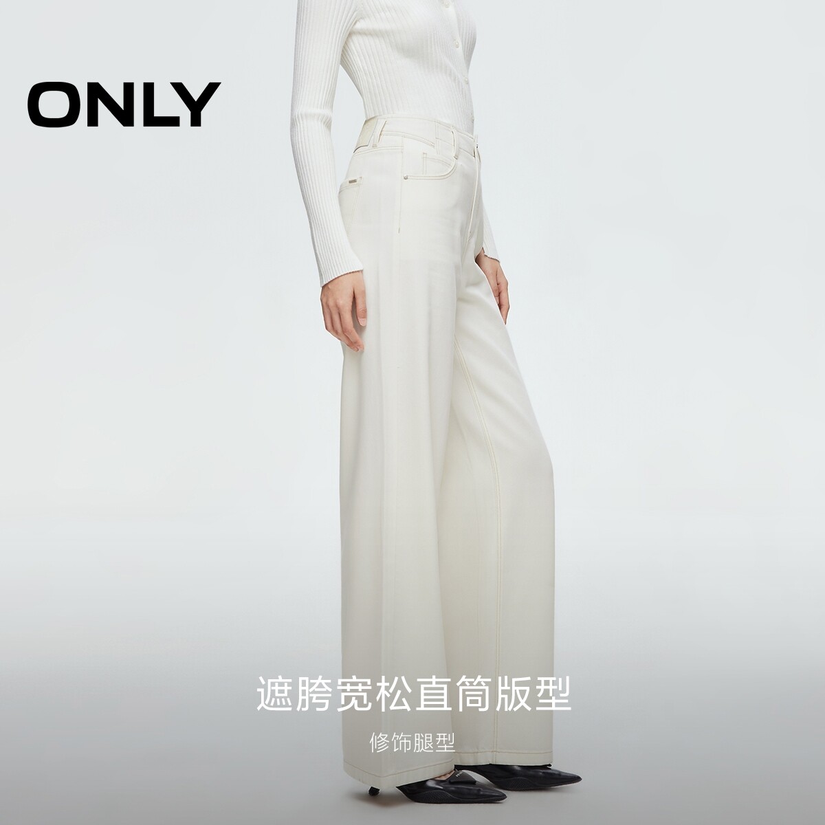 【ONLY奥莱】春季纯色高腰设计版型宽松显瘦直筒裤长裤牛仔裤女