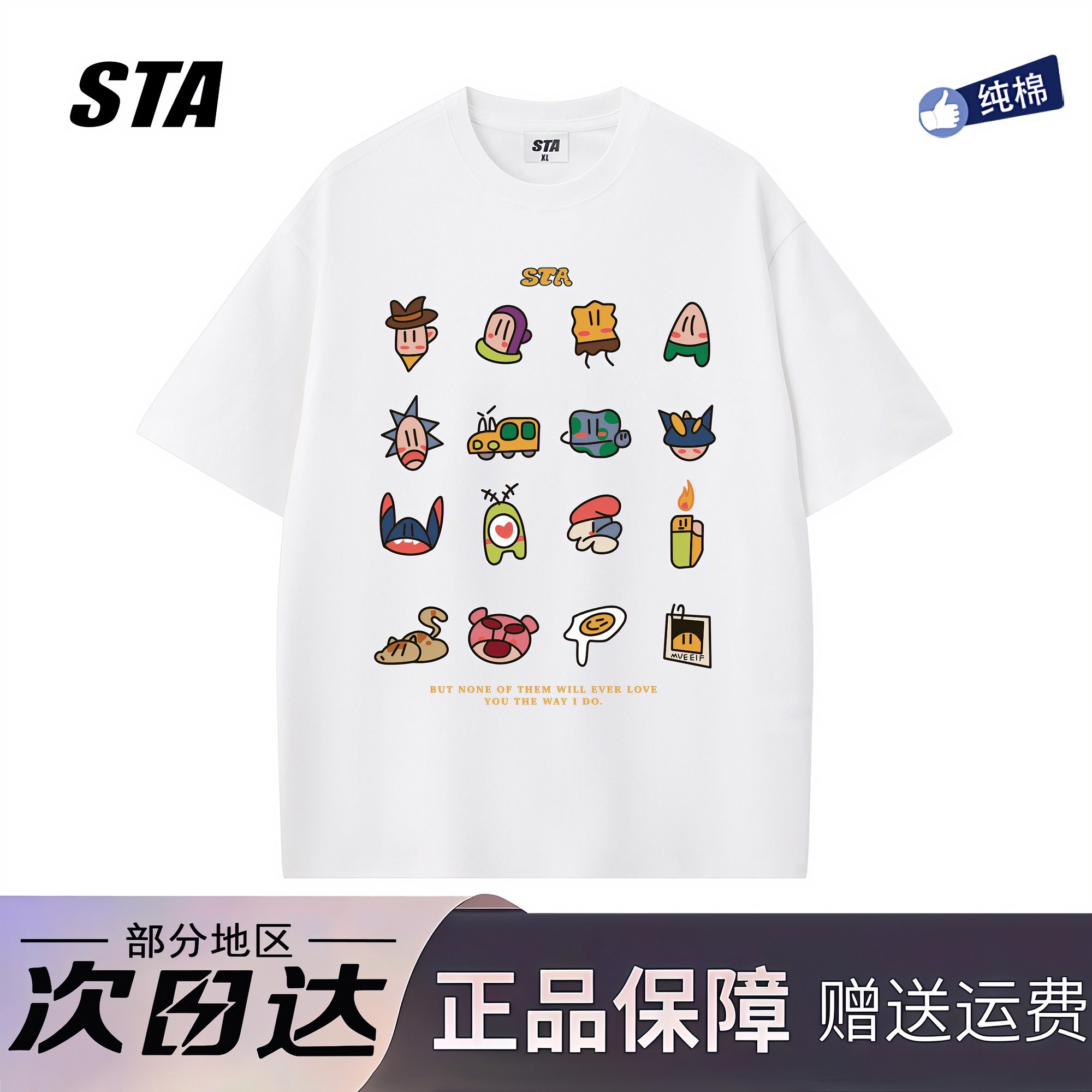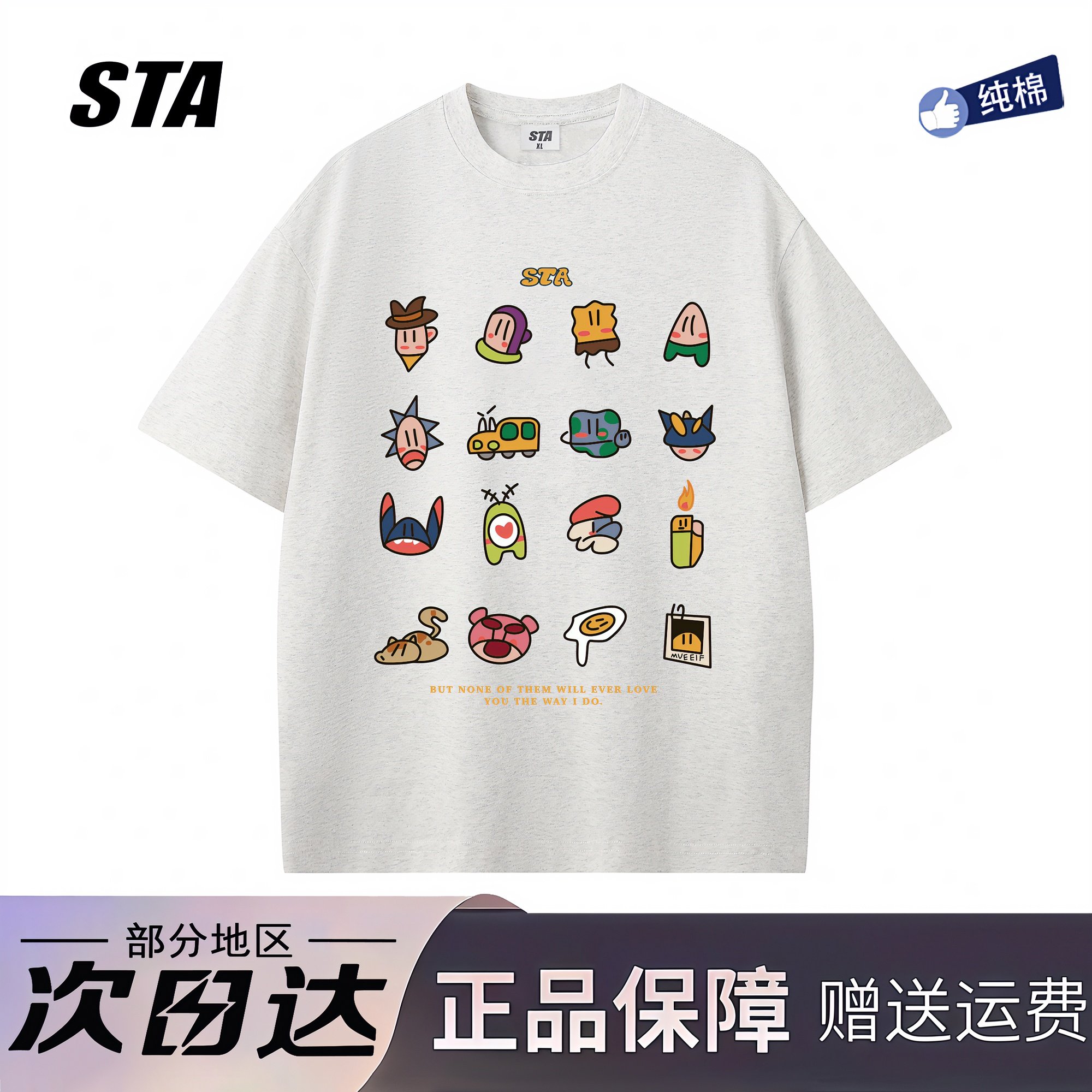 STA旗舰店美式潮牌重磅纯棉短袖男女夏季新款重磅纯棉宽松情侣T恤