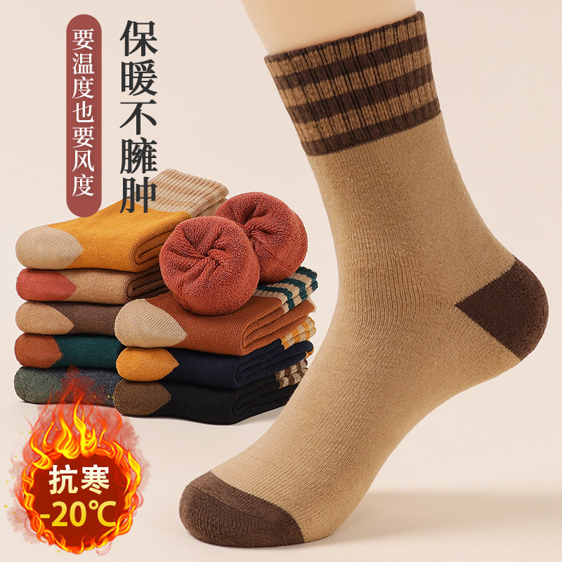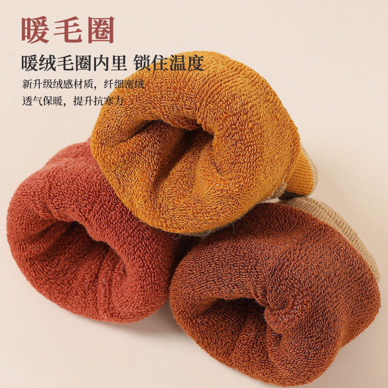 加绒加厚袜子女秋冬季保暖中长袜冬天毛圈袜棉袜纱线中筒袜羊毛