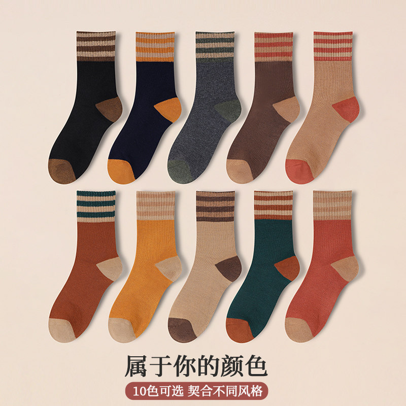 棉伙棉伴纯棉中筒袜抗起球男女纯色透气舒适耐穿日常百搭
