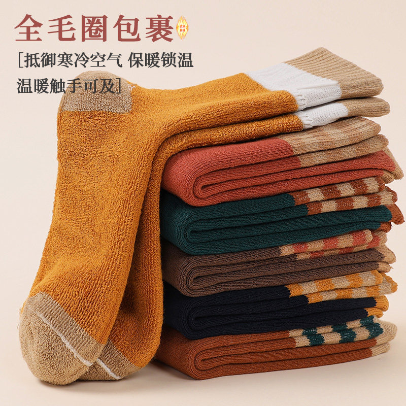 【送3双同款】秋冬新疆棉厚款中筒袜纯棉纱线毛巾底袜子男长袜女