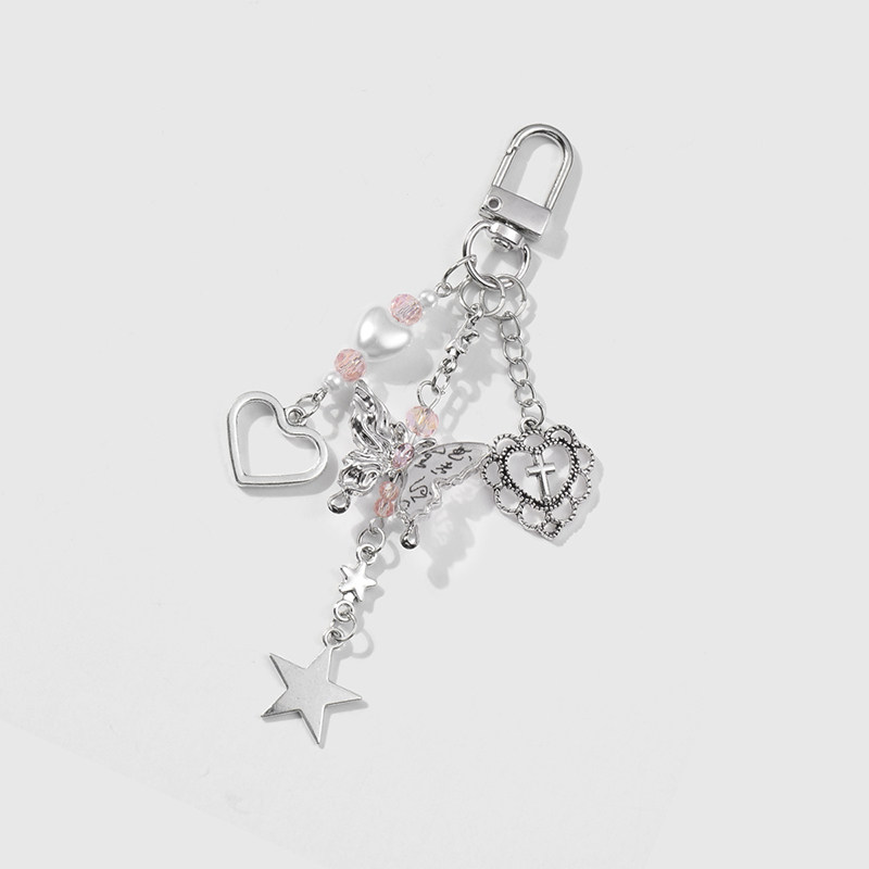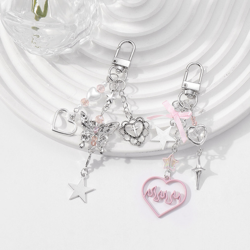 韩系ins风蓝牙小挂件爱心五角星蝴蝶装饰优质合金配件钥匙扣挂件