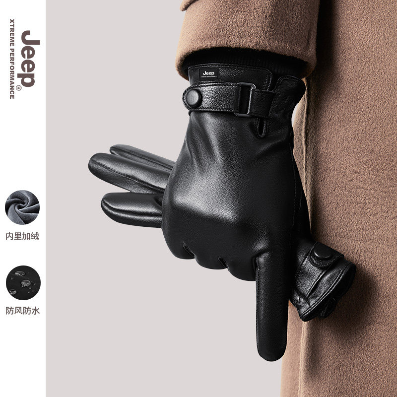 jeep吉普皮手套冬季男士真皮羊皮手套防风百搭保暖男冬骑行摩托车