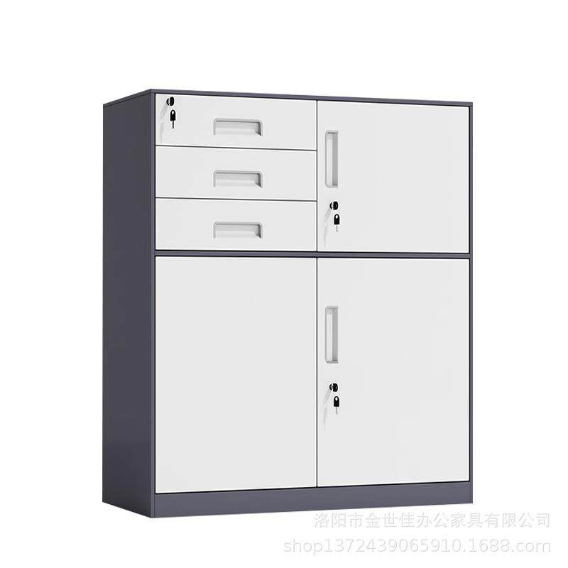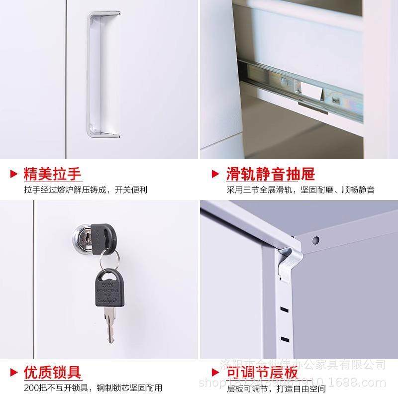 钢制文件柜偏三斗矮柜带锁抽屉柜办公资料柜铁皮柜多斗柜收纳柜