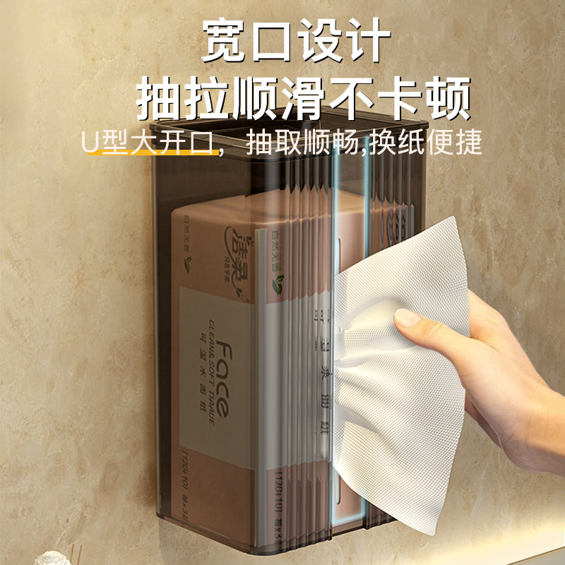 冰川纹洗脸巾收纳盒壁挂式纸巾盒家用轻奢风卫生间厨房倒挂抽纸盒