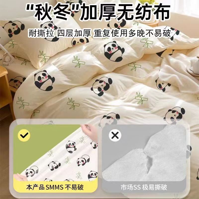 旅行一次性床单被罩枕套酒店出差双人床四件套装加厚隔脏印花睡袋