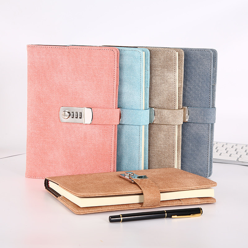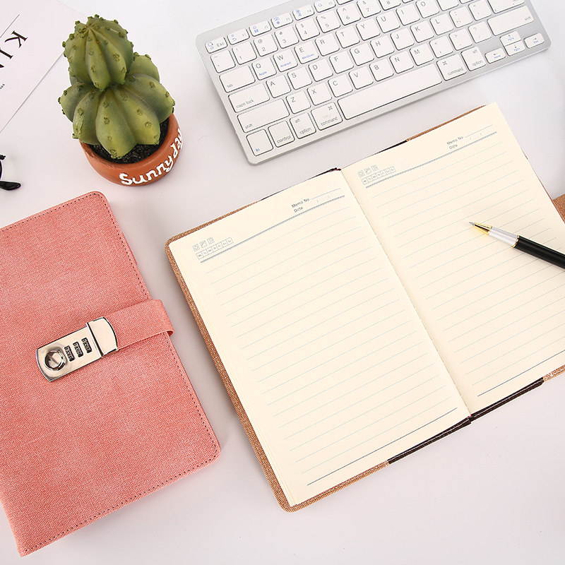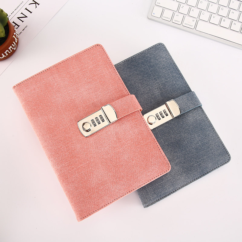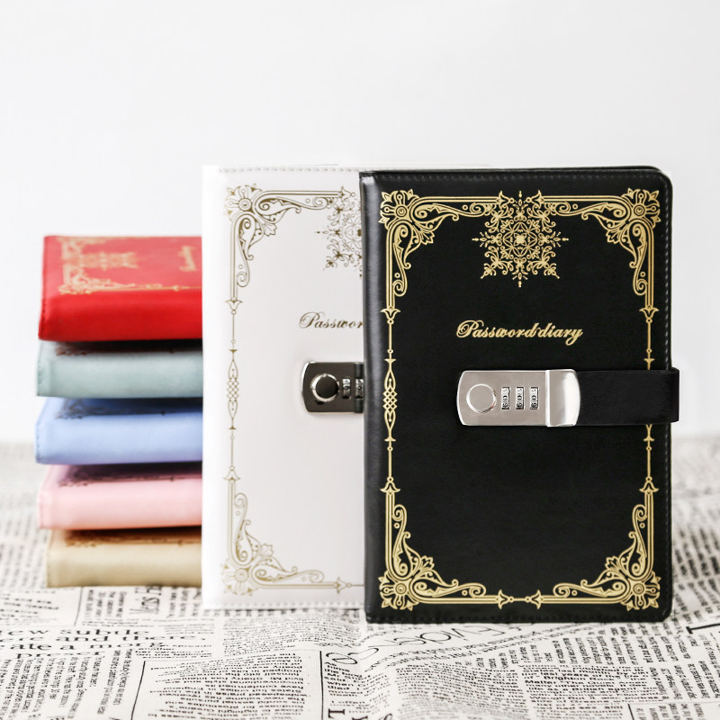 复古密码本带锁创意日记本简约学生书写笔记本日韩加厚少女手账本笔记本子文具商务会议密码锁指纹文具记事本