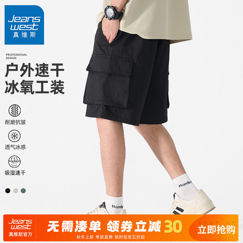 GV真维斯工装短裤男夏冰丝运动速干裤子男士男款休闲薄款五分裤A