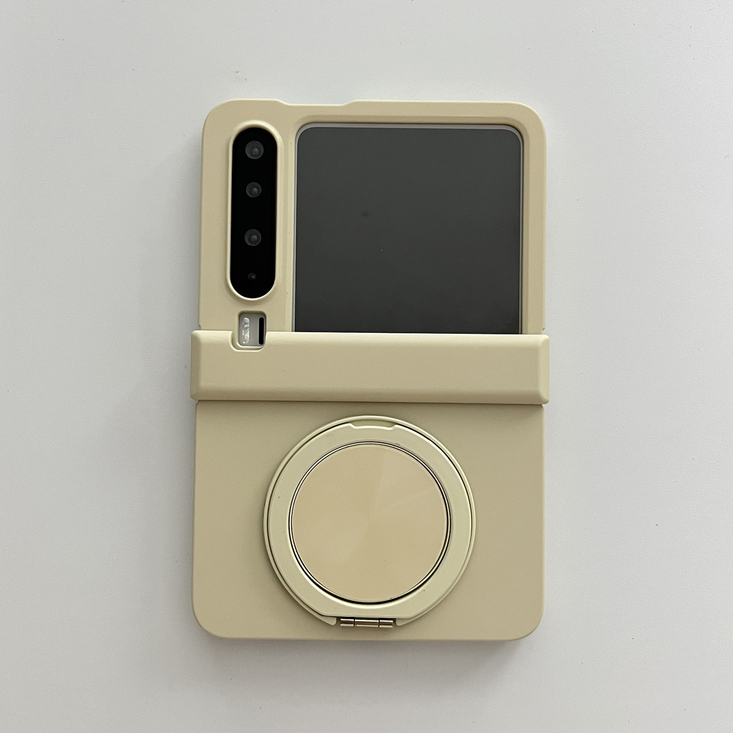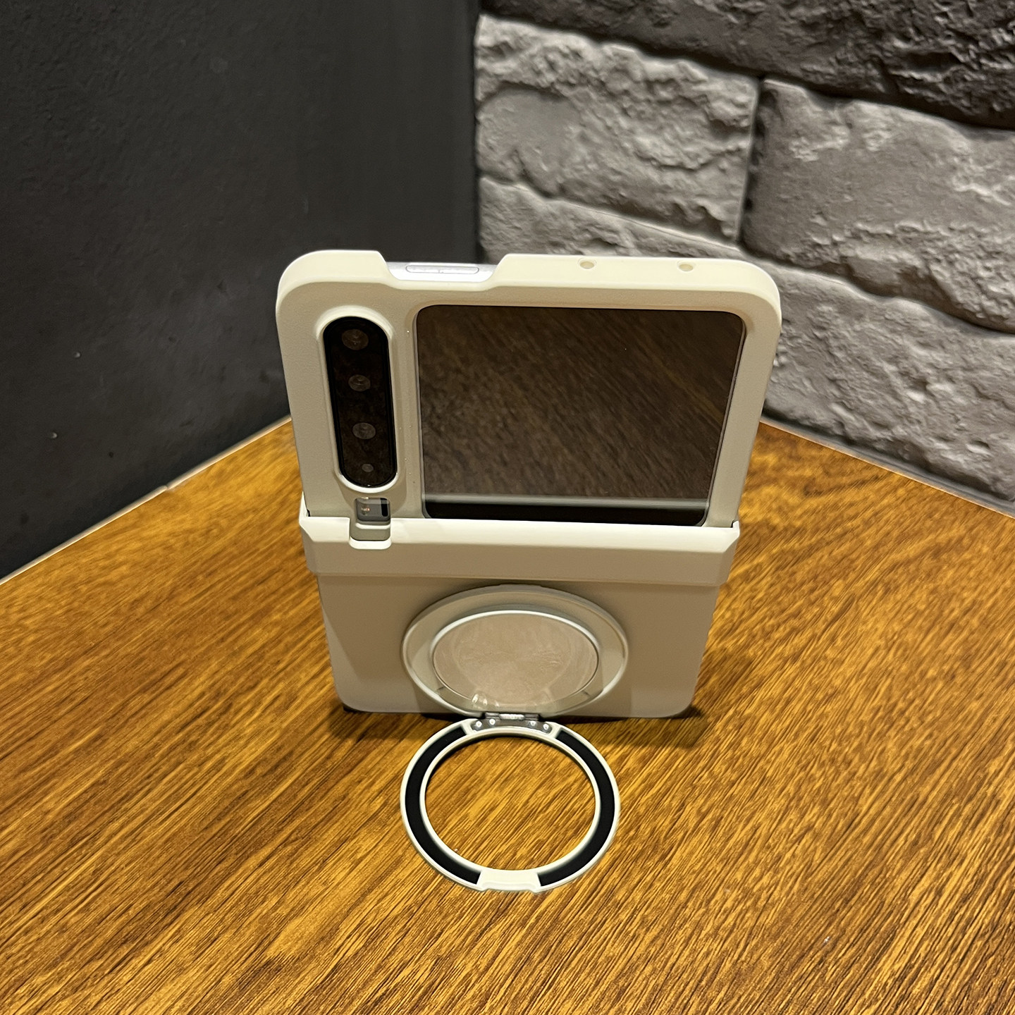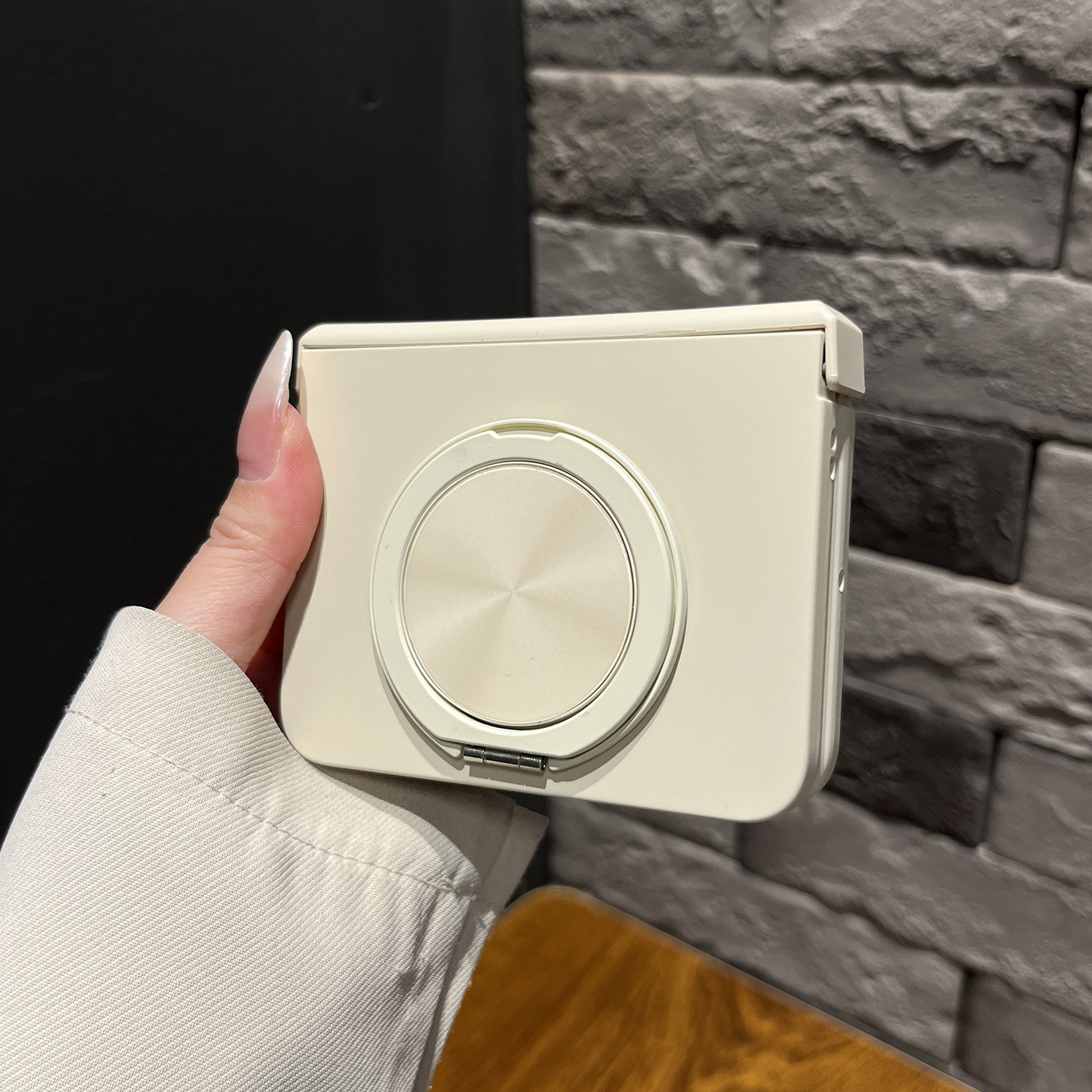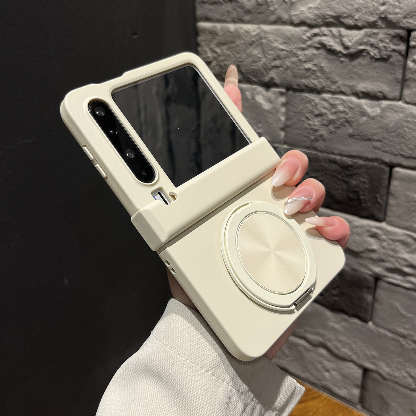 【带支架】中轴壳膜一体古董白色适用华为pura X手机壳pocket2可折叠zflip6极简纯色oppoN3flip女米Xflip外壳